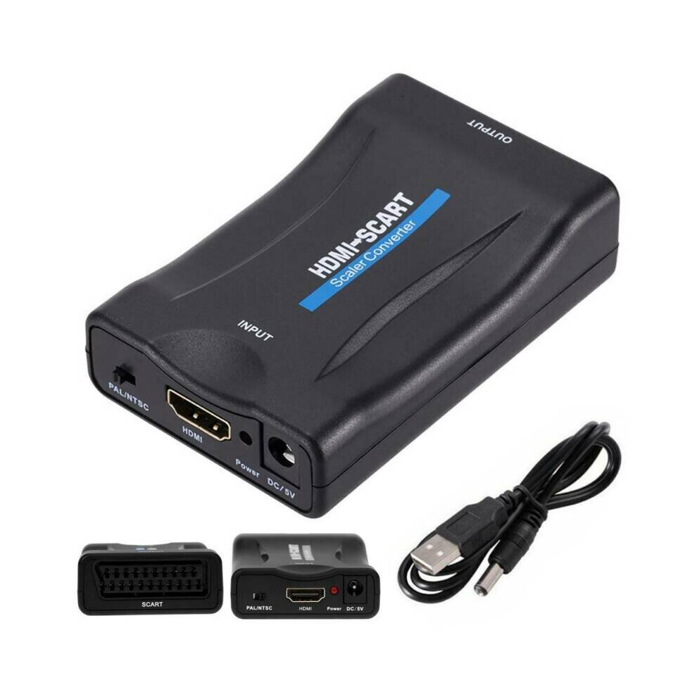 HDMI to SCART Adapter 1080P Video Audio Upscale Converter USB Cable