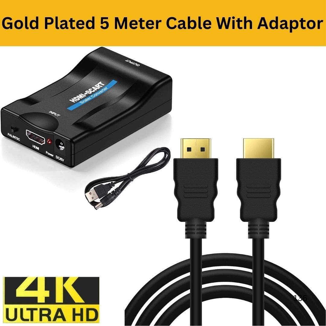 Scart to HDMI Converter with Scart Female to Female Adapter + Scart and HDMI Cab