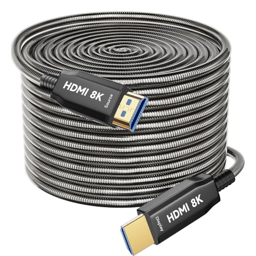 Ploiwue long 8k HDMI opticafiber cable 15M Metal Armor Jacket active optical AOC 2.1cable 48Gbps ultra high speed cable Function for HDTV/Projec tor Home Theatre Gaming box Blu ray player projector