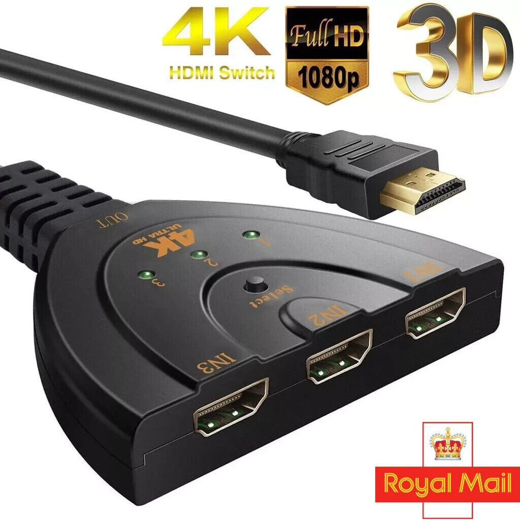 3 Port HDMI Splitter 4K Full HD Cable HDMI Switcher HUB BOX LCD HDTV PS3 PS4 PS5