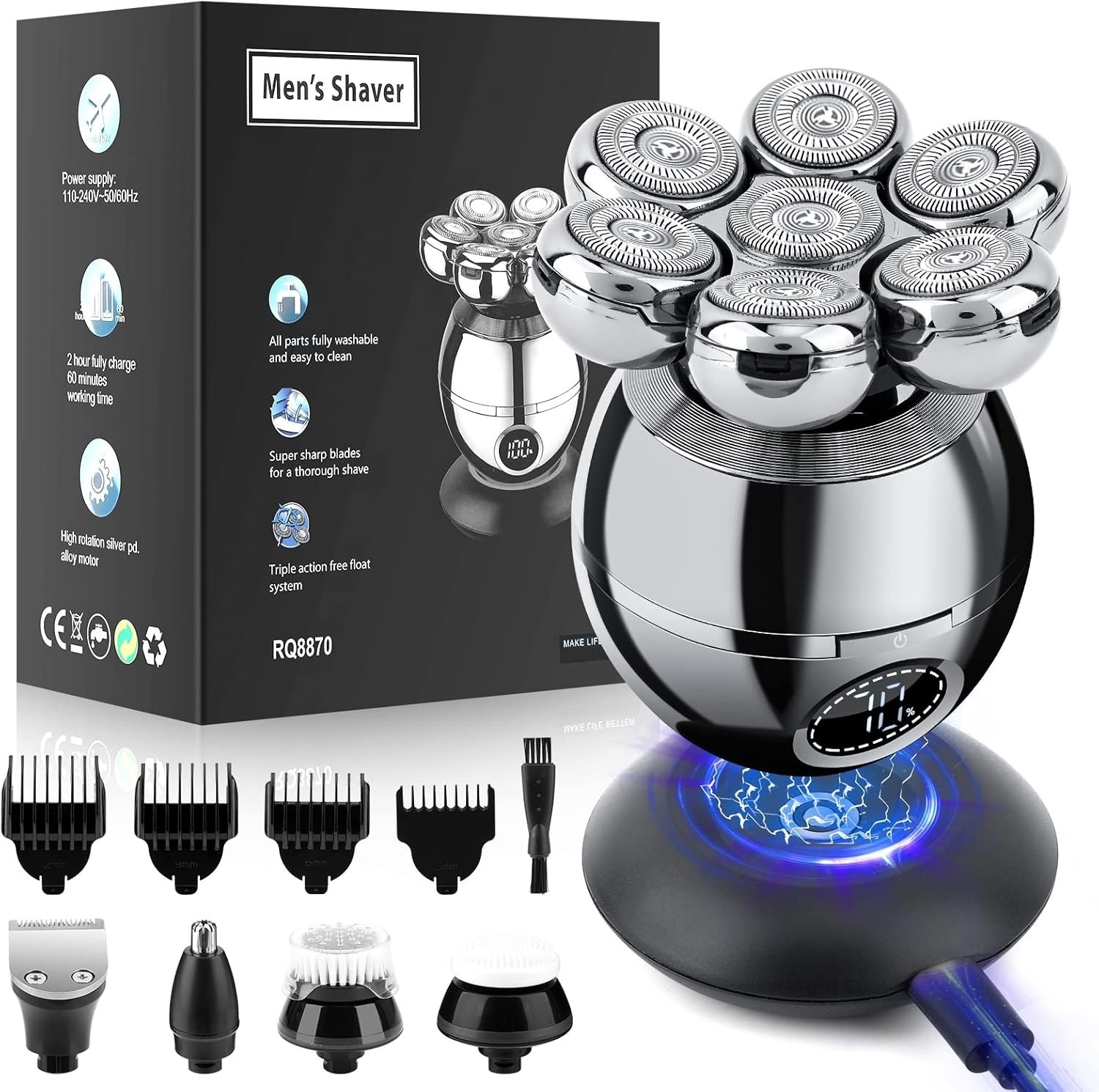 7D Electric Shaver 7 Head Razor Bald Beard Hair Skull Trimmer Beard Remover Mens