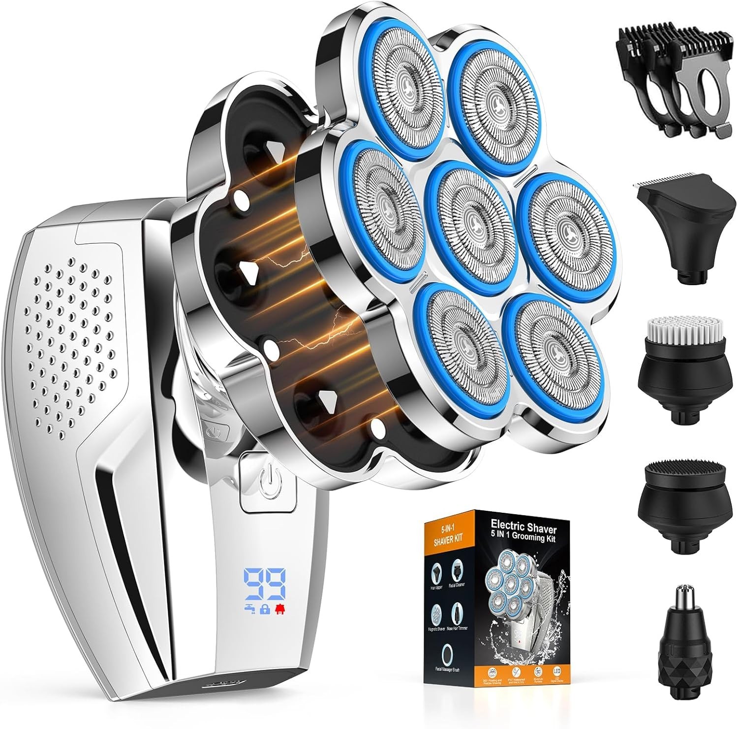 7D 5in1 Shavers Bald Head Razor for Men Cordless Wet Dry Electric Hair Remover