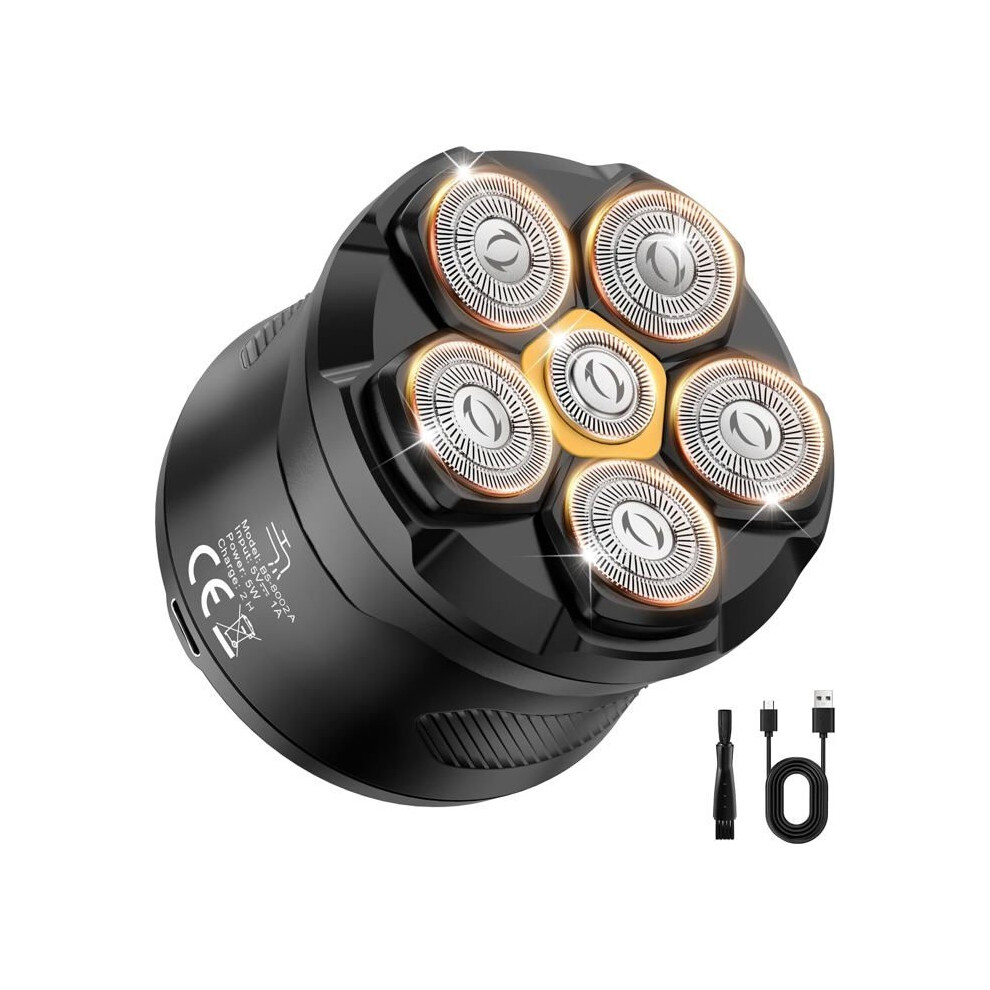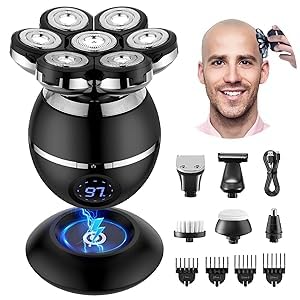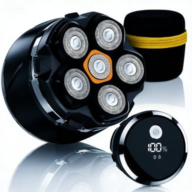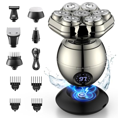 Skull Shavers for Men, 7D Bald Head Razor, 6-in-1 Wet & Dry Rotary Shaver, IPX7 Waterproof Electric Clipper With LED Display, Rechargeable