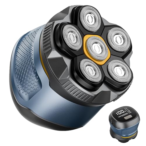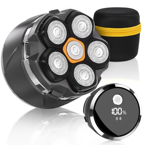 Head Shaver for Bald Men, Rechargeable Cordless Electric Shaver with Type-C Charge, Waterproof 6D Rotary Razor with Travel Lock, Wet/Dry Use,with LED Display