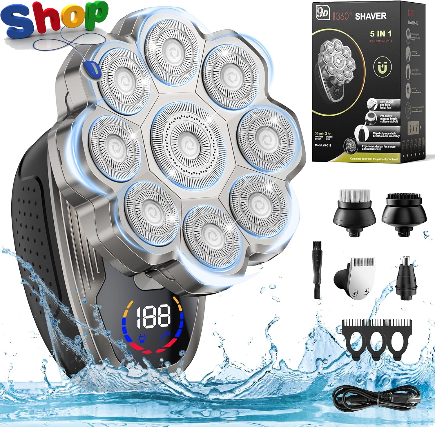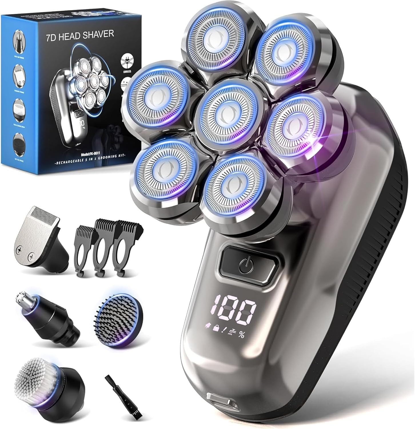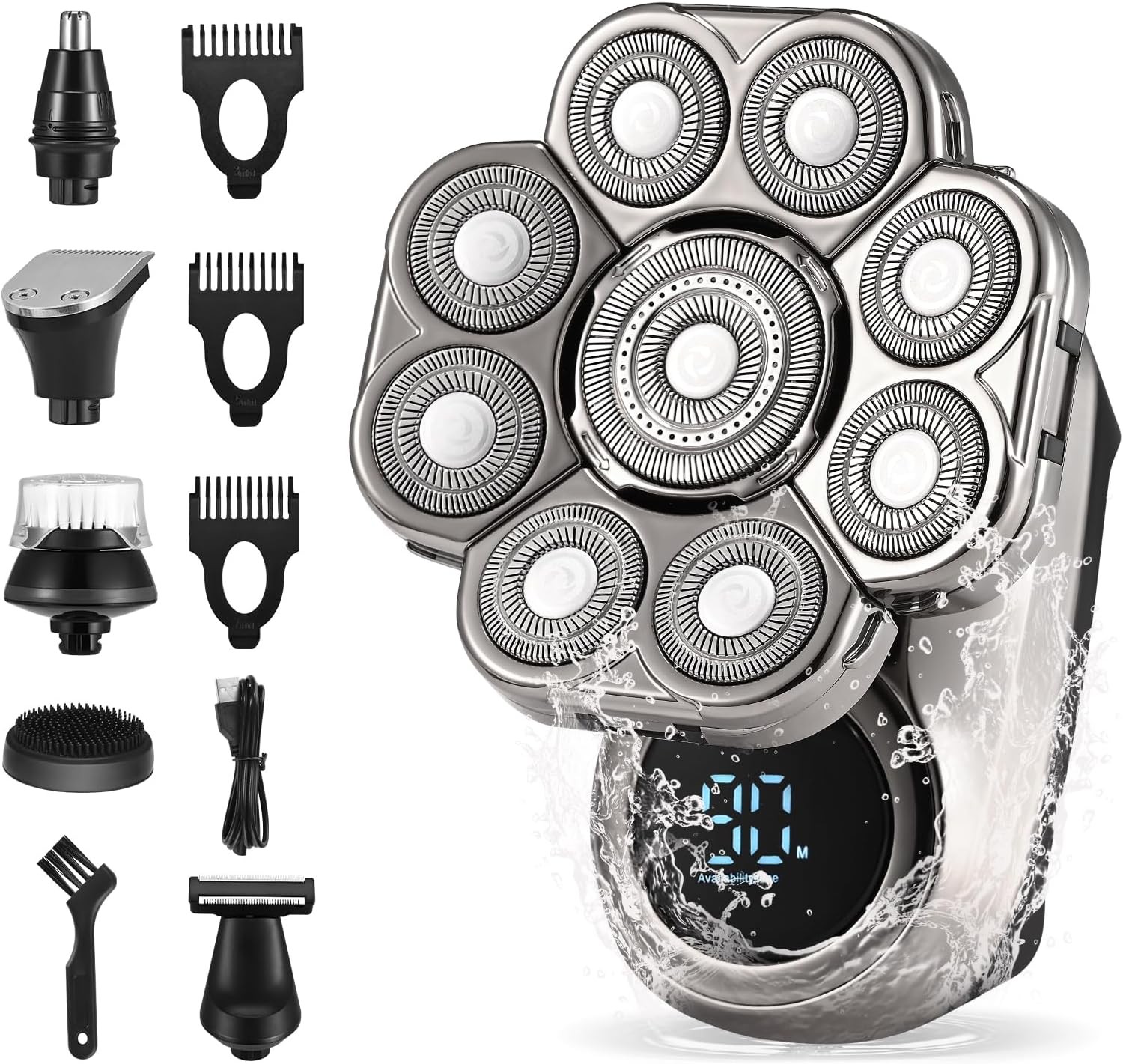 7D Floating Head Shaver for Bald Men,IPX7 Waterproof Shaving Grooming Kit,5 in