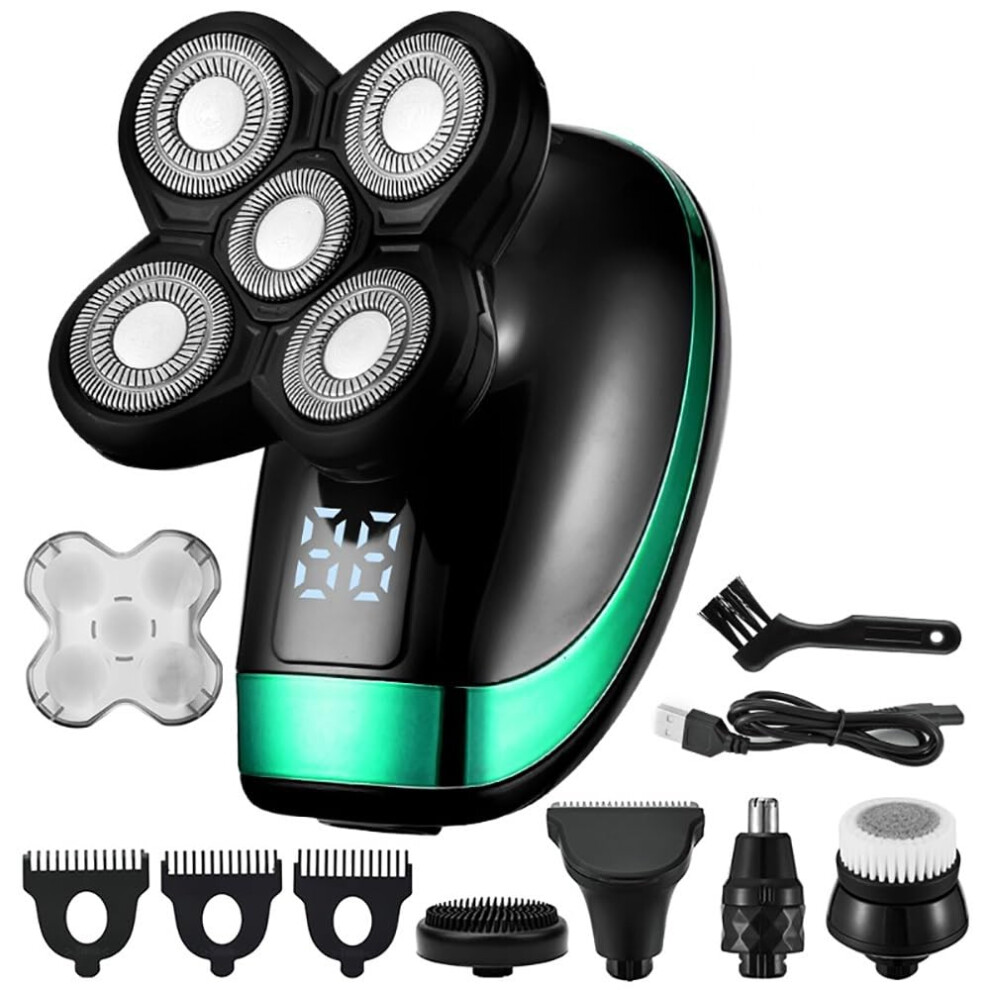 Men's Head Shaver 5in1 Bald Head Electric Shaver with Beard and Nose Trimmer USB Charging Green