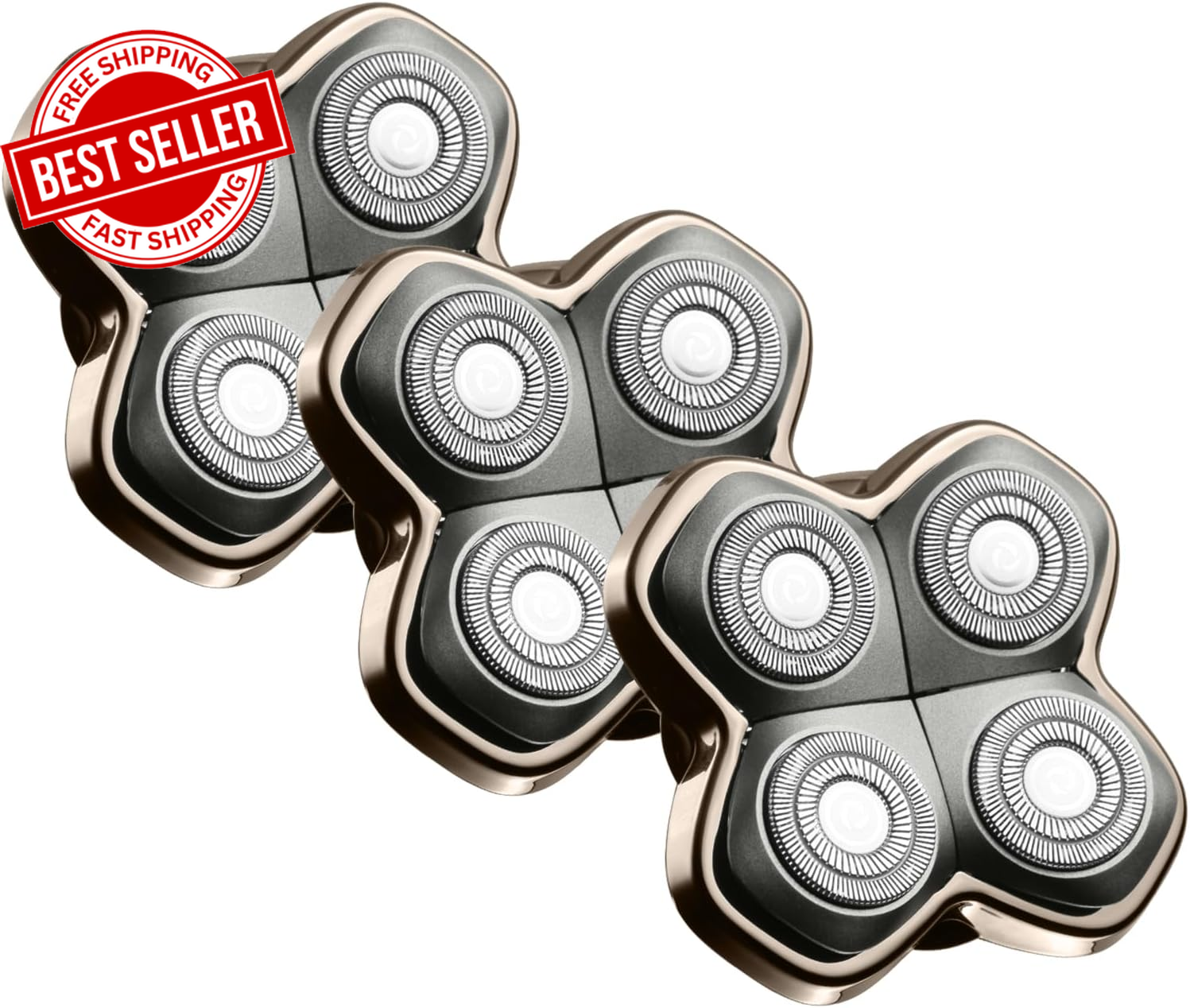 Shaver 4-Head Replacement Blade,Compatible with Skull Pitbull, Butterfly Kiss Pro & Palm Shavers, Bald Head & Body Electric Razor for Men & Women (3 Pack)