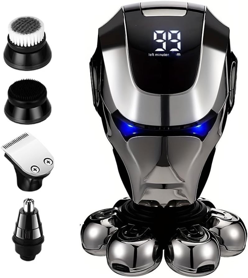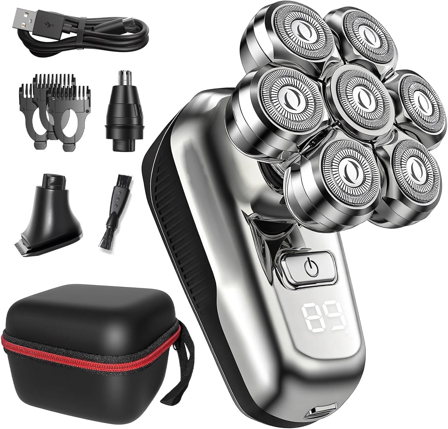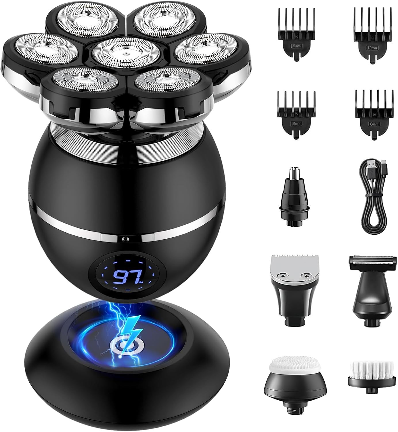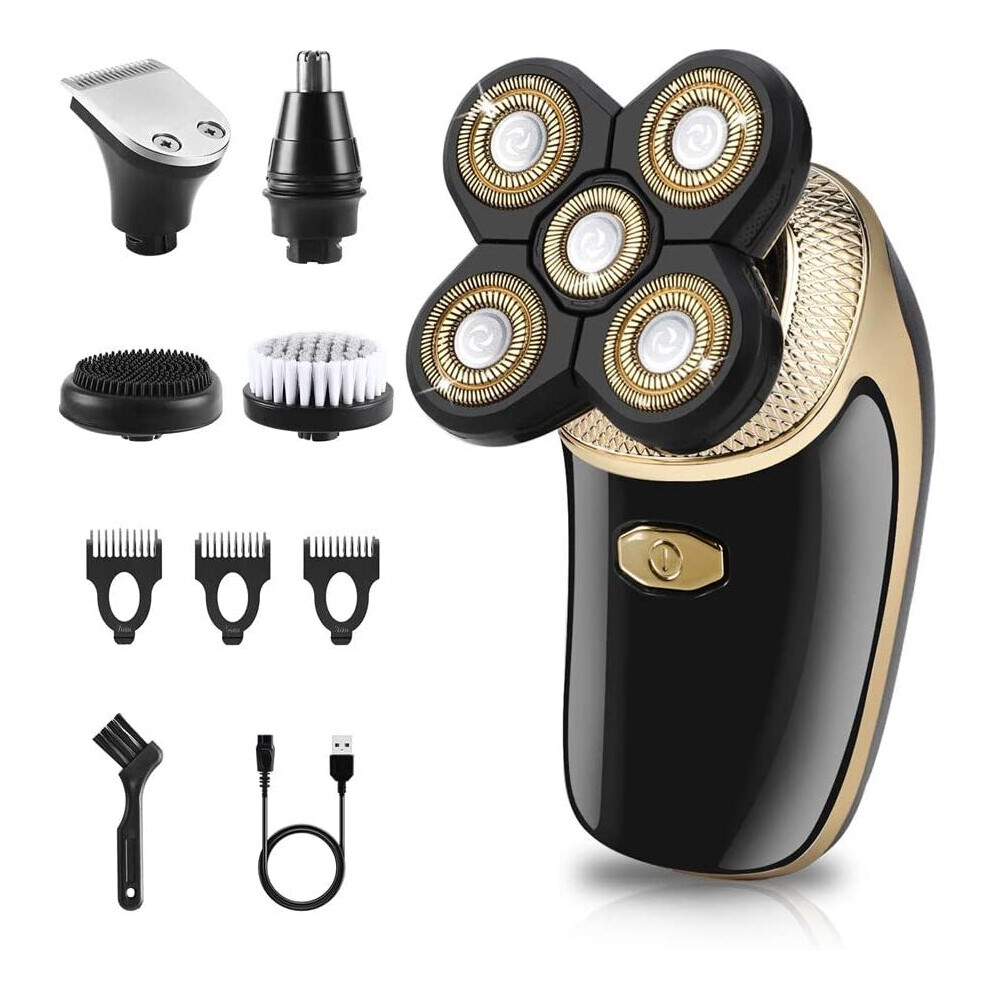 5-in-1 Electric Head Shaver for Bald Men - 7D Floating Head, Wet & Dry, Rotary Shaver, Nose Trimmer, Hair Clipper, Facial Brush, Body Trimmer