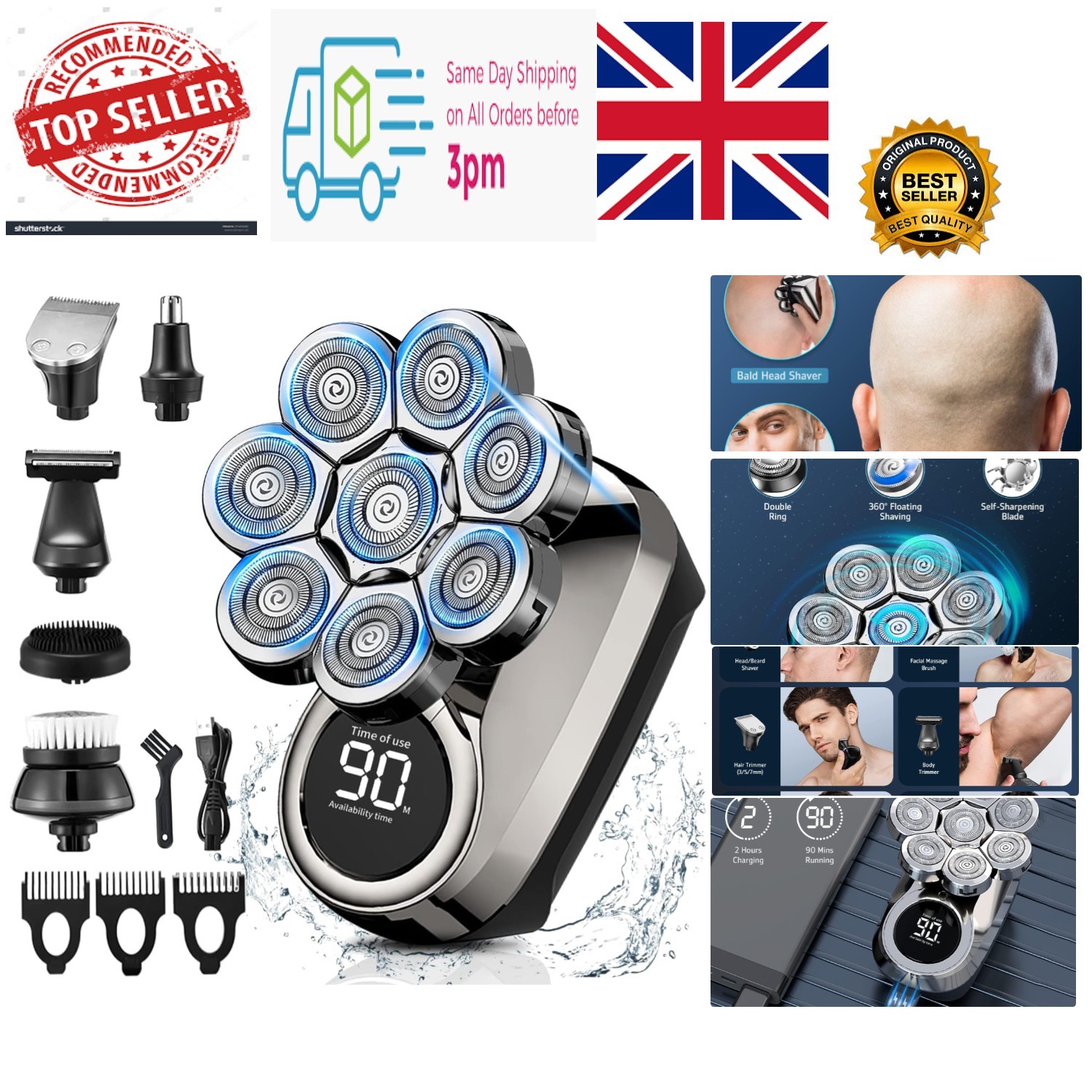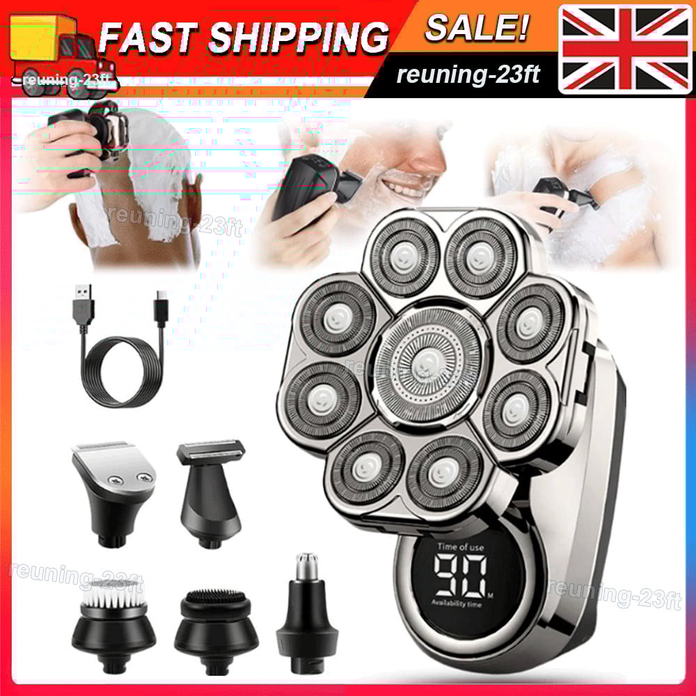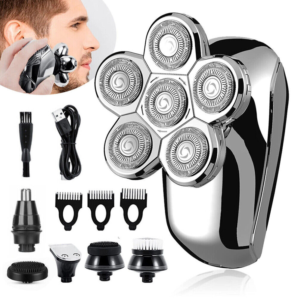 9D 6 in 1 Electric Razor Wet Dry Head Shaver for Bald Men Trimmer Grooming Kit
