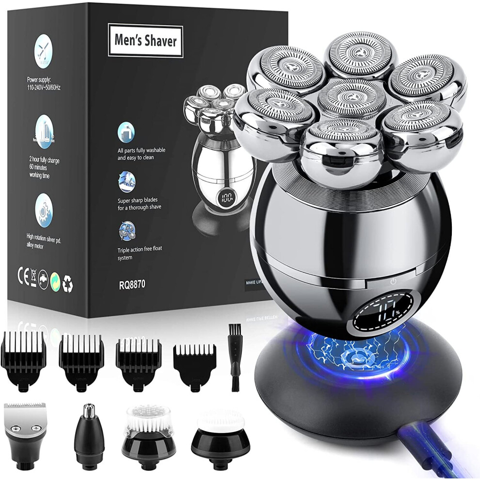 7D Electric Head Shaver for Men, Magnetic Rotary Shaver, Facial Groomer