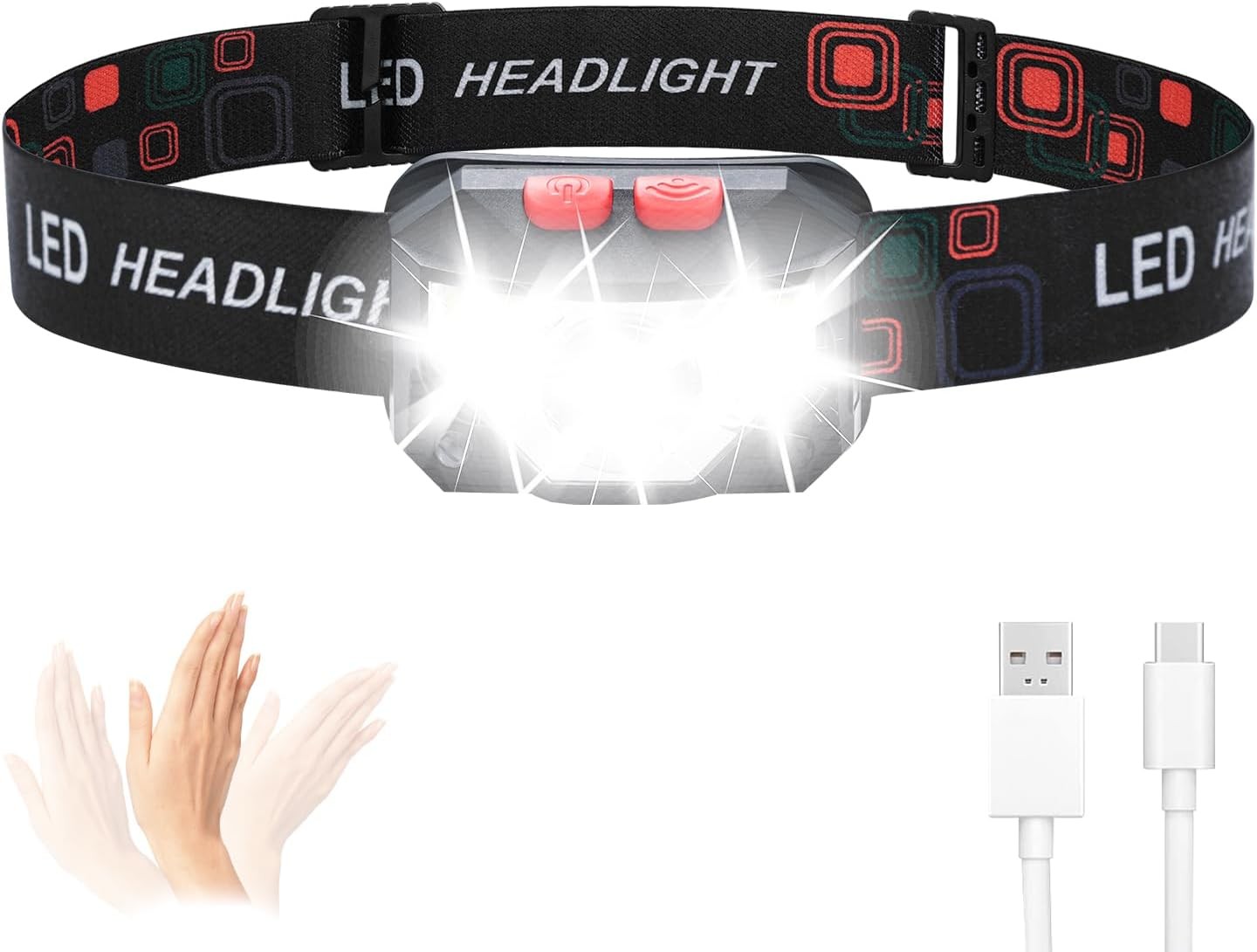Rechargeable LED Head Torch, 8 Light Modes with Motion Sensor, IPX45 Waterproof
