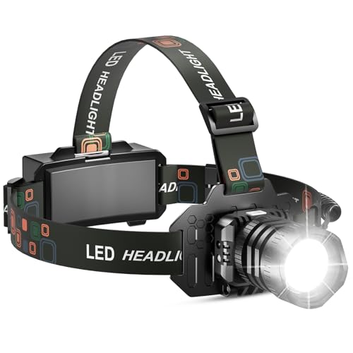 Sogdeco Head Torch Rechargeable 8 Light Modes 50000LM Super Bright Led Headtorch with Red Warning Light,Sensor Control,Head Torch Waterproof IPX6 for Camping Running Fishing Hiking