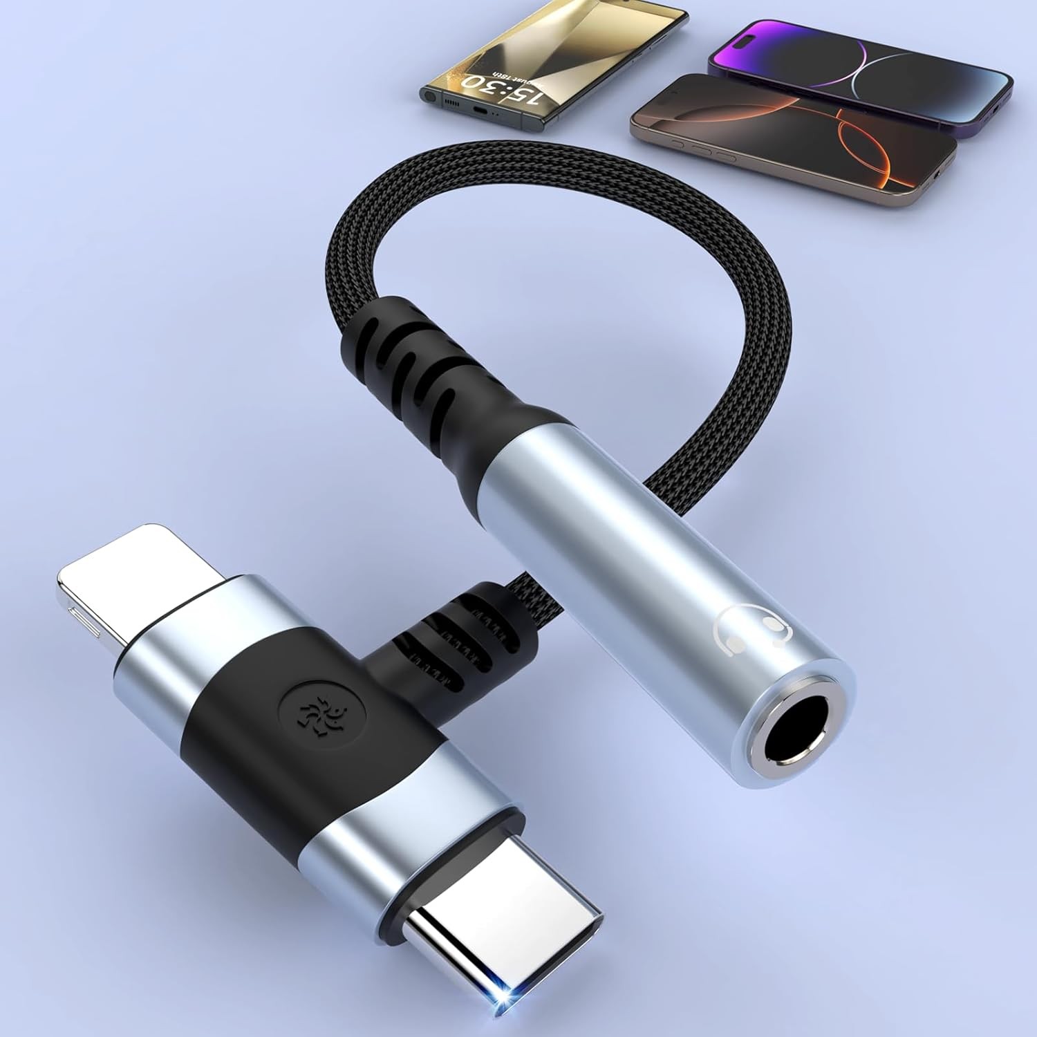 2 in 1 Lightning+USB C to 3.5mm Headphone Jack Adapter for iPhone, USB C and Li