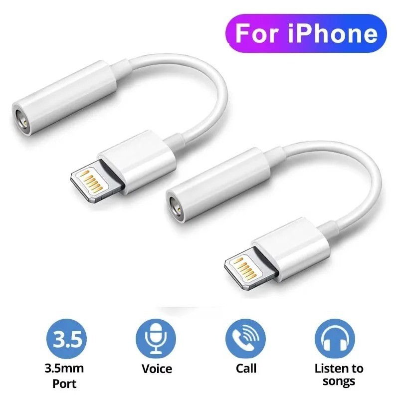 2 in 1 Headphone Adapter for compatible with iPhone, compatible with Apple Lightning to 3.5mm Jack Aux Audio Dongle