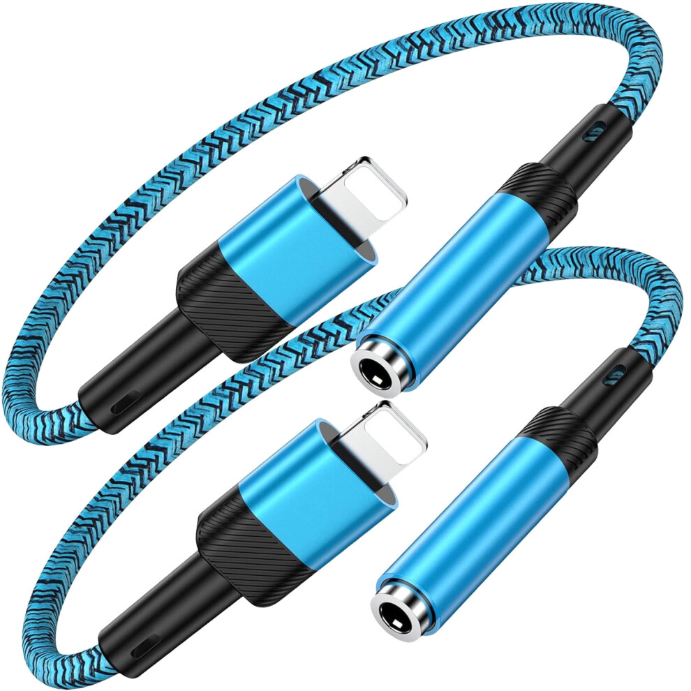 2 in 1 Headphone Adapter for compatible with iPhone - 3.5mm AUX Audio + Charger Splitter for compatible with iPhone 13/12/11/XS/XR/X/8/7 Plus - Blue