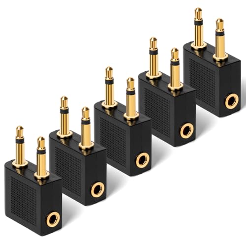 AXFEE Airplane Flight Headphone Adapters, 5 Pack Gold Plated 3.5mm Airplane Flight Adapters for Headphones, Airplane Headphone/Earphone Socket Adaptor, Stereo Aux Jack Airplane Headphone Adapters