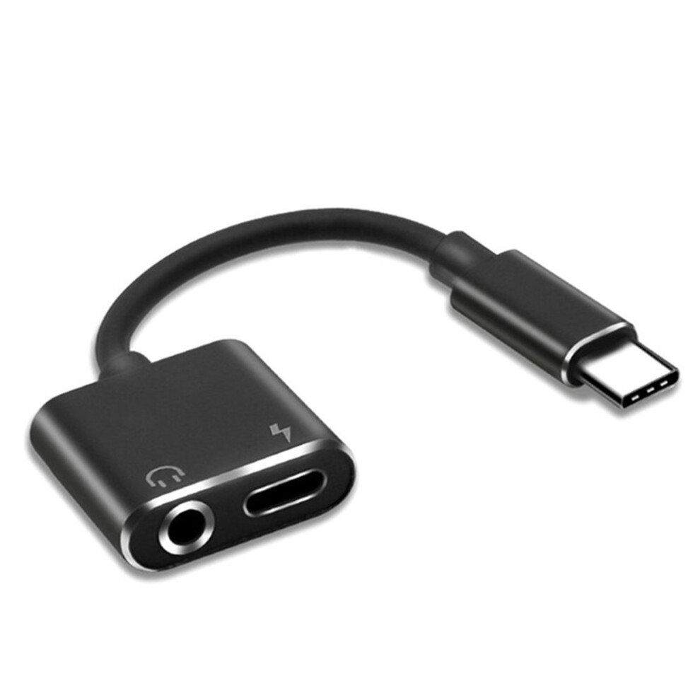 2 in1 Type-C to 3.5mm Headphone Adaptor/Connector Charger, Earphone Aux Audio & Charge Adaptor black