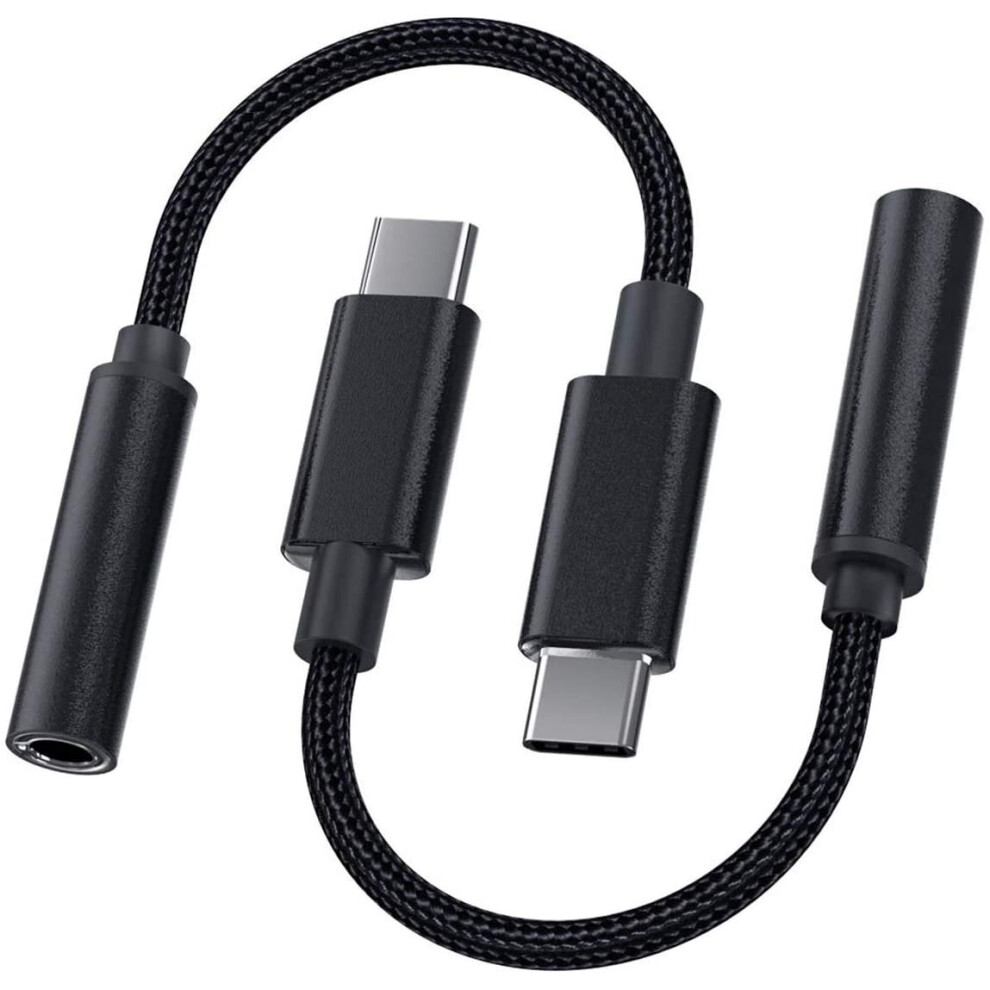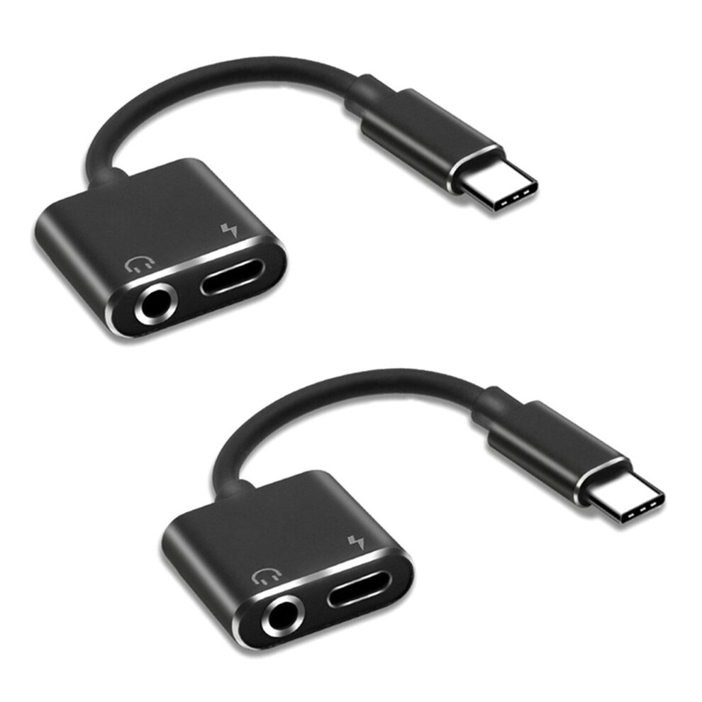 2X 2 in1 Type-C to 3.5mm Headphone Adaptor/Connector Charger, Earphone Aux Audio & Charge Adaptor black