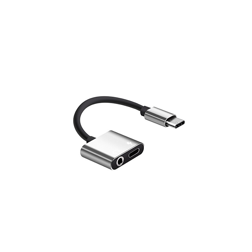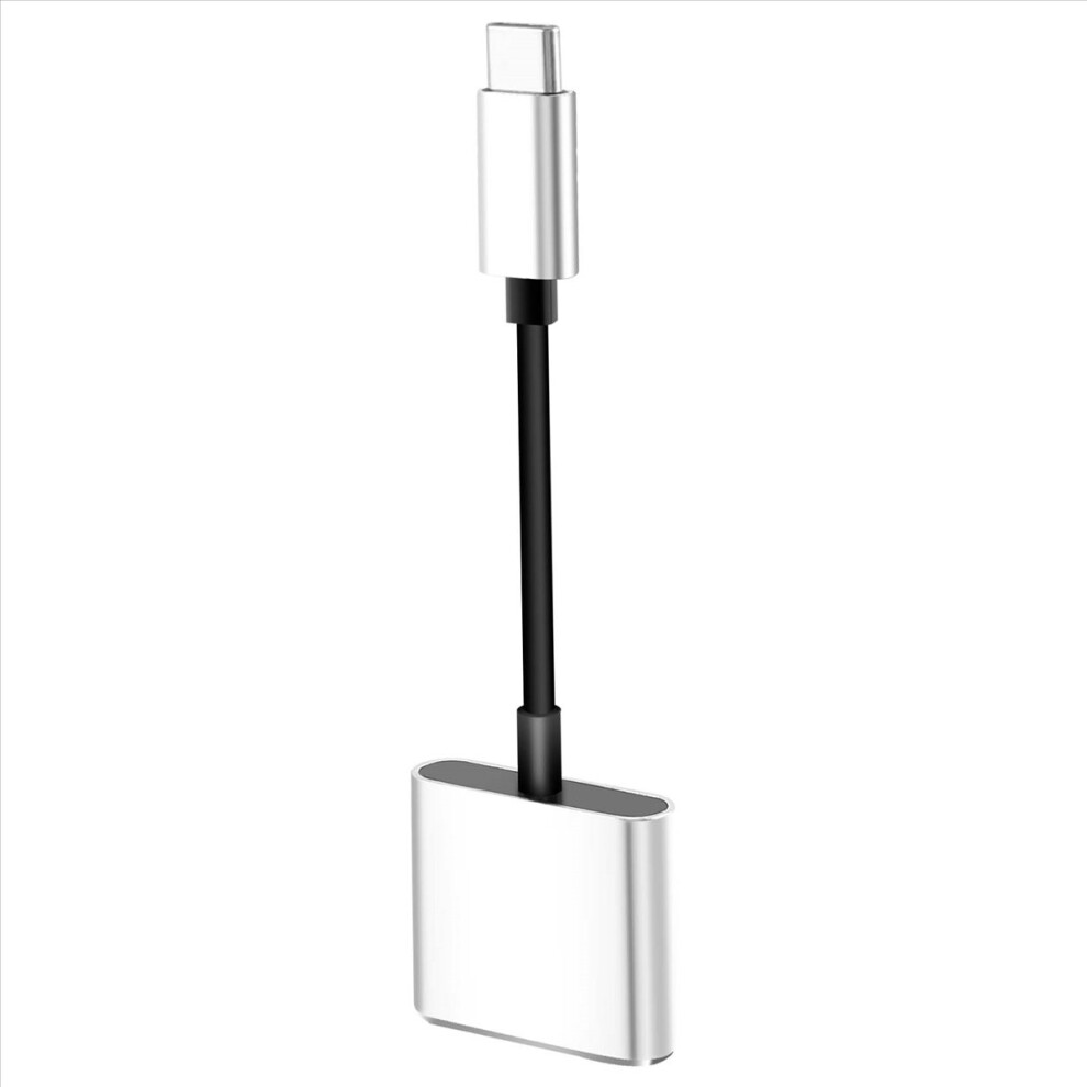 2 in1 Type-C to 3.5mm Headphone Adaptor/Connector Charger, Earphone Aux Audio & Charge Adaptor Silver