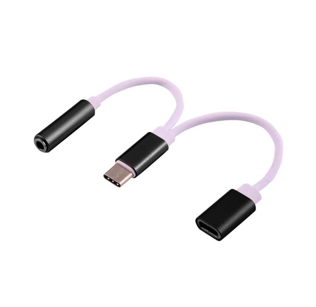 2in1 USB Type C to 3.5mm AUX audio Headphone Jack Adaptor Charger Lead Converter
