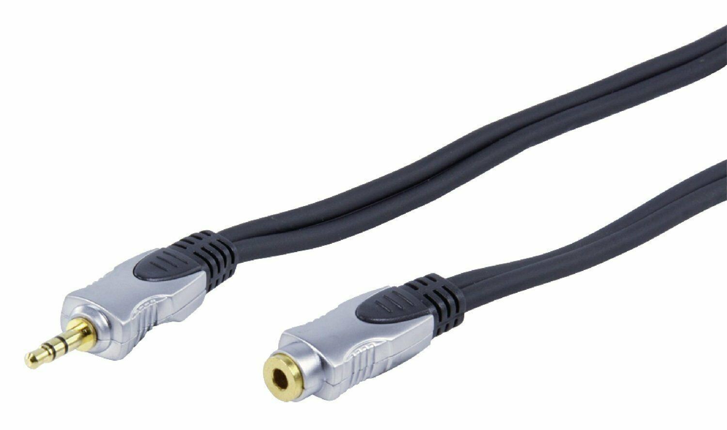 KabelDirekt – 5m – Headphone Extension Lead Cable, 3.5mm connectors (aux audio cable, male jack plug/female jack, practically unbreakable metal casing, perfect for headphones, black)