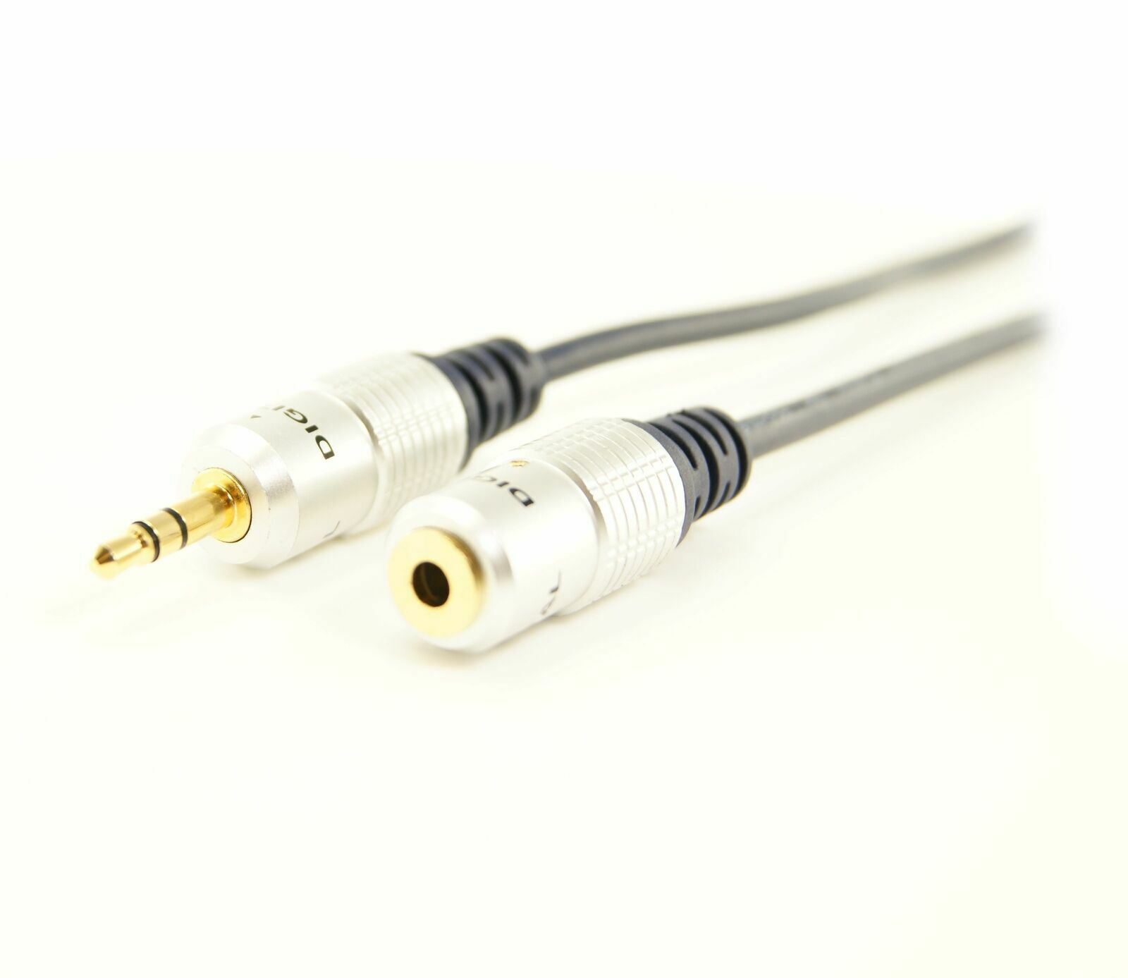 KabelDirekt – 5x 3m – Headphone Extension Lead Cable, 3.5mm connectors (aux audio cable, male jack plug/female jack, practically break-proof metal casing, perfect for headphones, black)