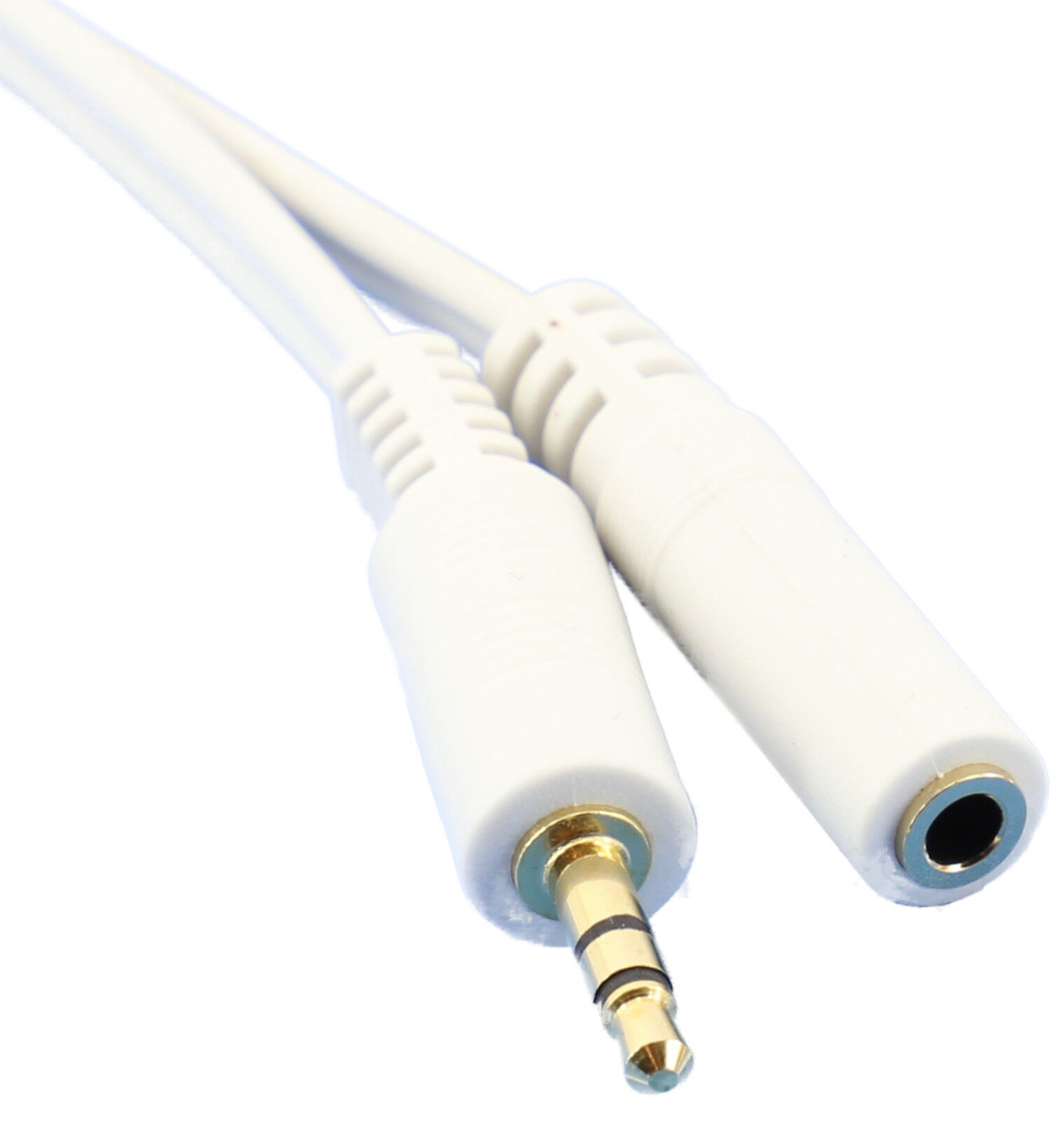 AUX Headphone Extension Cable 3.5mm Mini Jack Audio Lead Male to Female White 1M