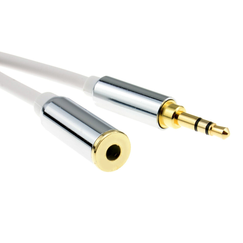 1m White 3.5mm Jack Headphone Extension Cable M-F Gold Plated