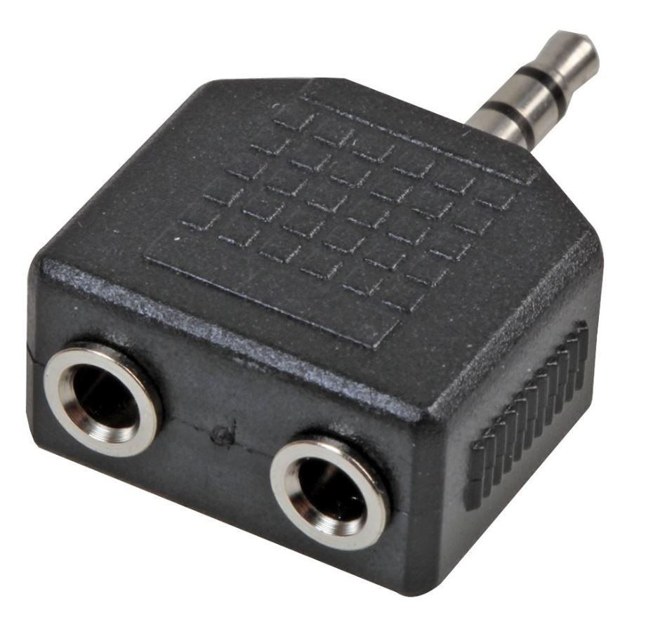 Black Slim Mini Jack Headphone Splitter Cable Adapter - 3.5mm Audio Mini Stereo