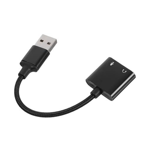LALAFINA USB Sound Card Adapter External USB Audio Card Headphone Splitter for Computer Black Aluminium Alloy with Pvc Plug and Play and Stable Sound Quality for Enhanced Audio Experience
