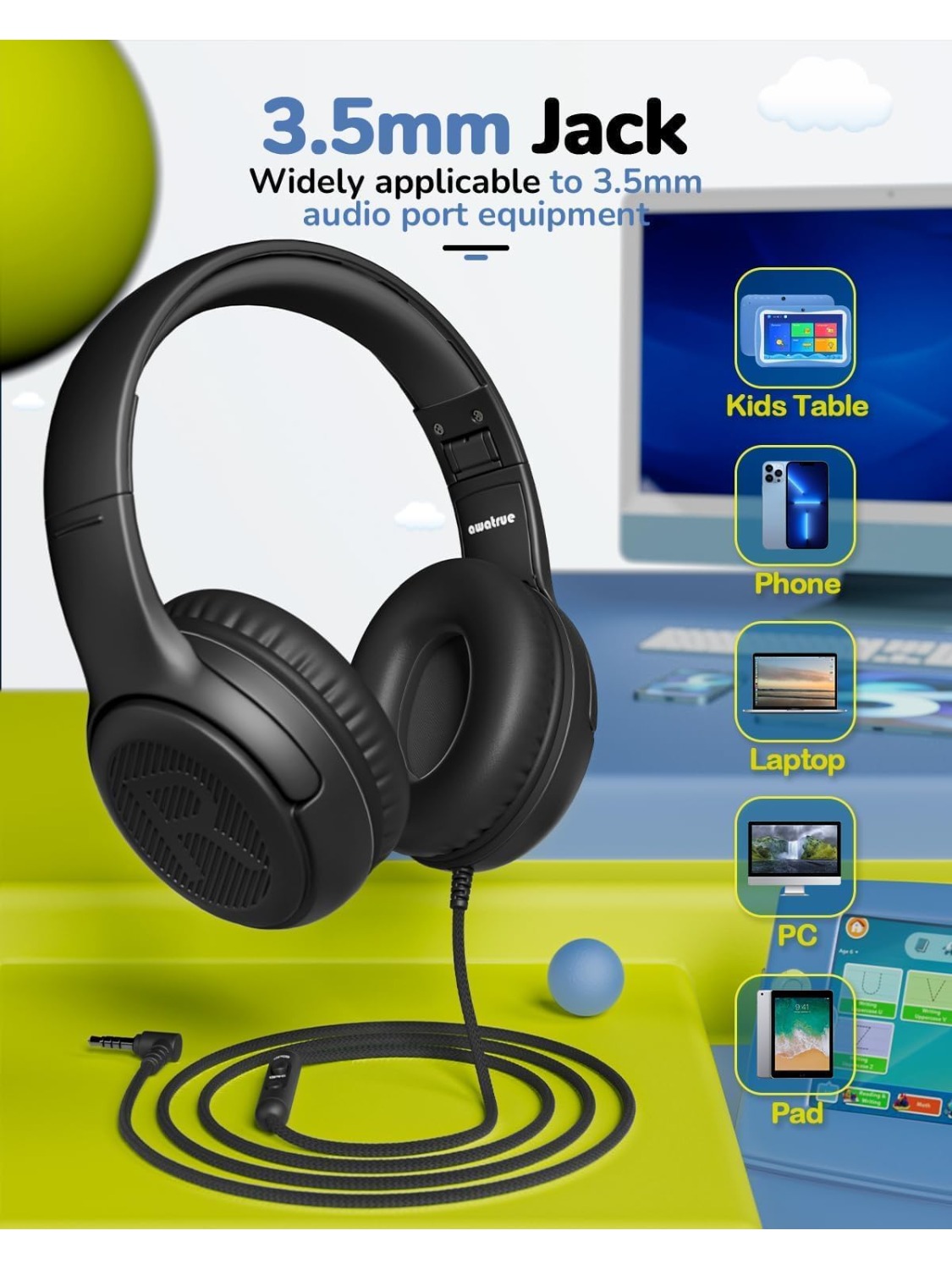 1/2/3Pcs AWATRUE AT2 Kids Headphones Wired Toddler Headsets with Mic Over-Ear Headphone Foldable on-Ear Design for PC,Laptop