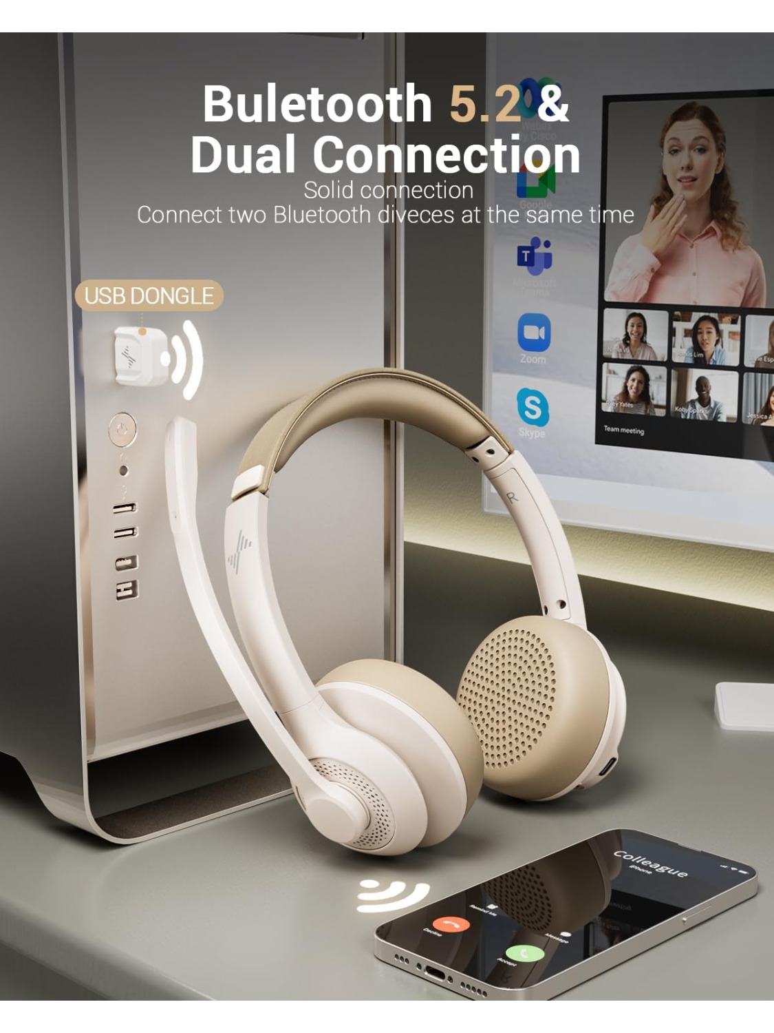 Voistek Wireless Headset,Bluetooth Headphones with Mic Noise Canceling for PC Laptop,USB Dongle & Charging Dock,50H Battery,Mute Button for Office Work,Skype,Zoom,Teams,Call Center