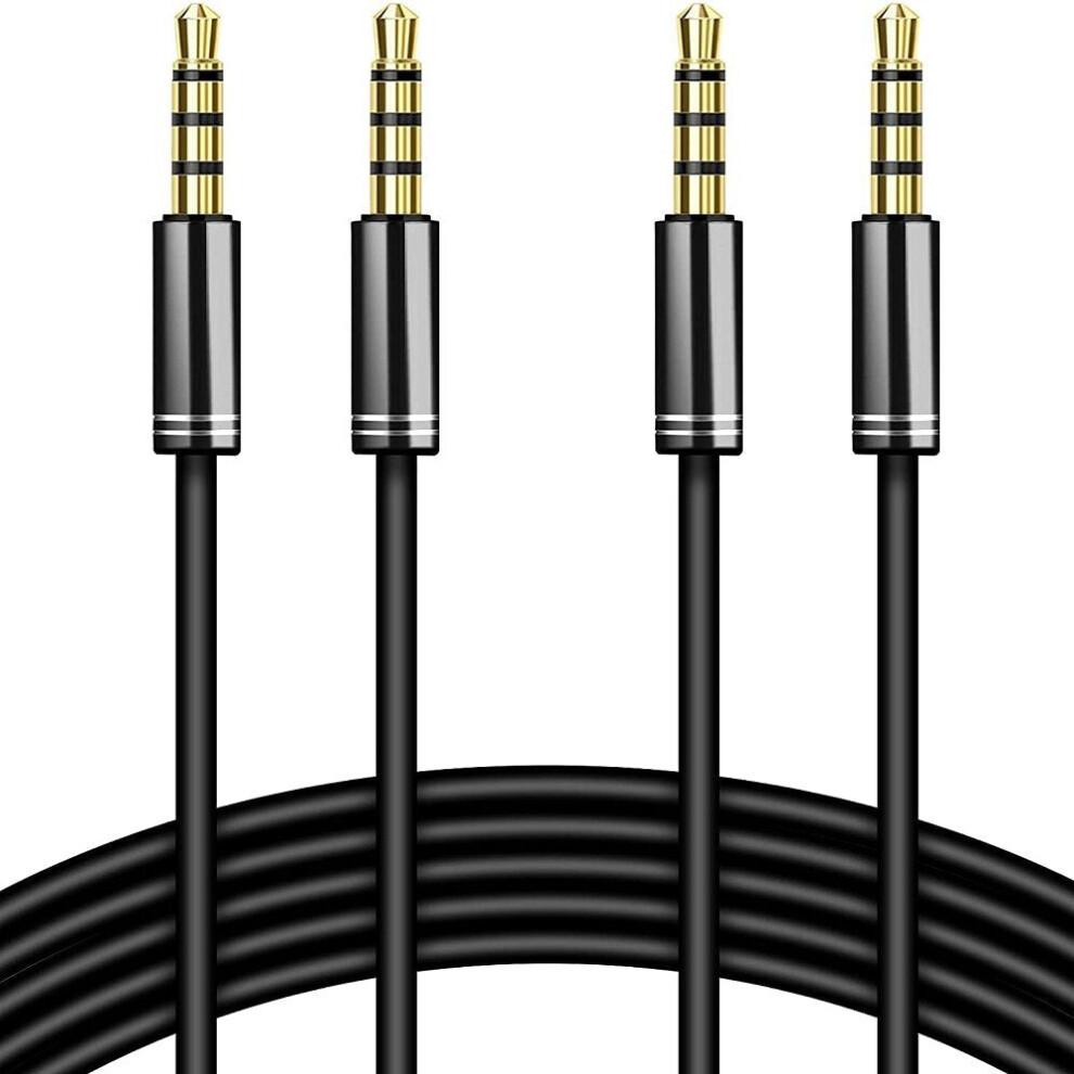 Male to Male Audio Cable 4 Pole Stereo Aux Cable/Auxiliary Cable/Aux Cord for Headphones / Smartphone/Tablets/ Headset/ PC/ Laptop 2PCS 3.5mm