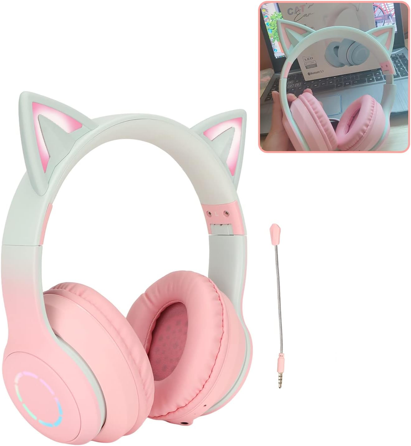 Gugxiom Cat Ear Headphones, Wireless Gaming Headsets via Bluetooth 5.1/3.5Mm AUX