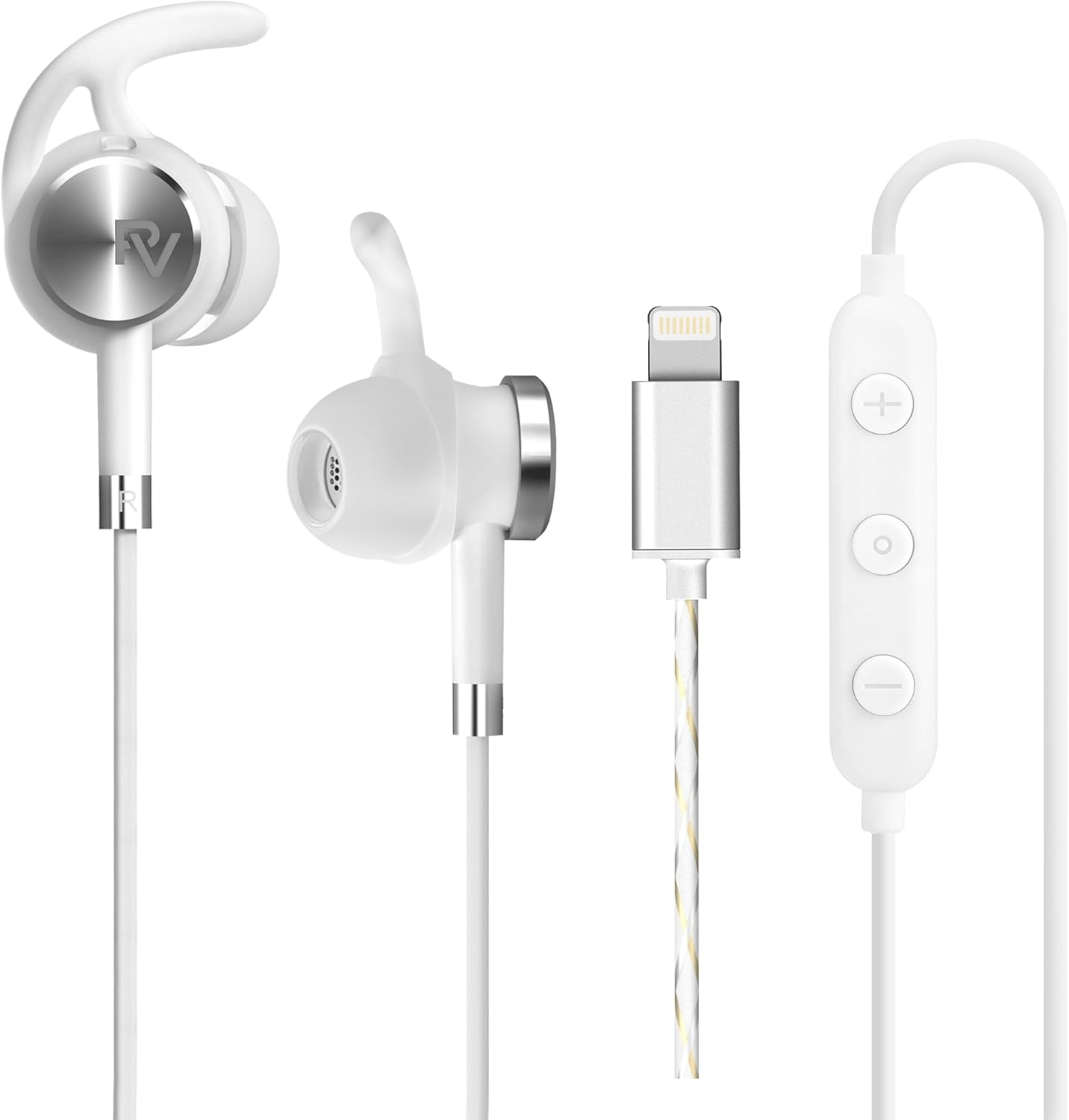 MFi Certified Lightning Headphones for Universal Control, In-Ear Earphones with Bass Stereo Sound and Ergonomic Design for Hands-Free Phone Call (Earb