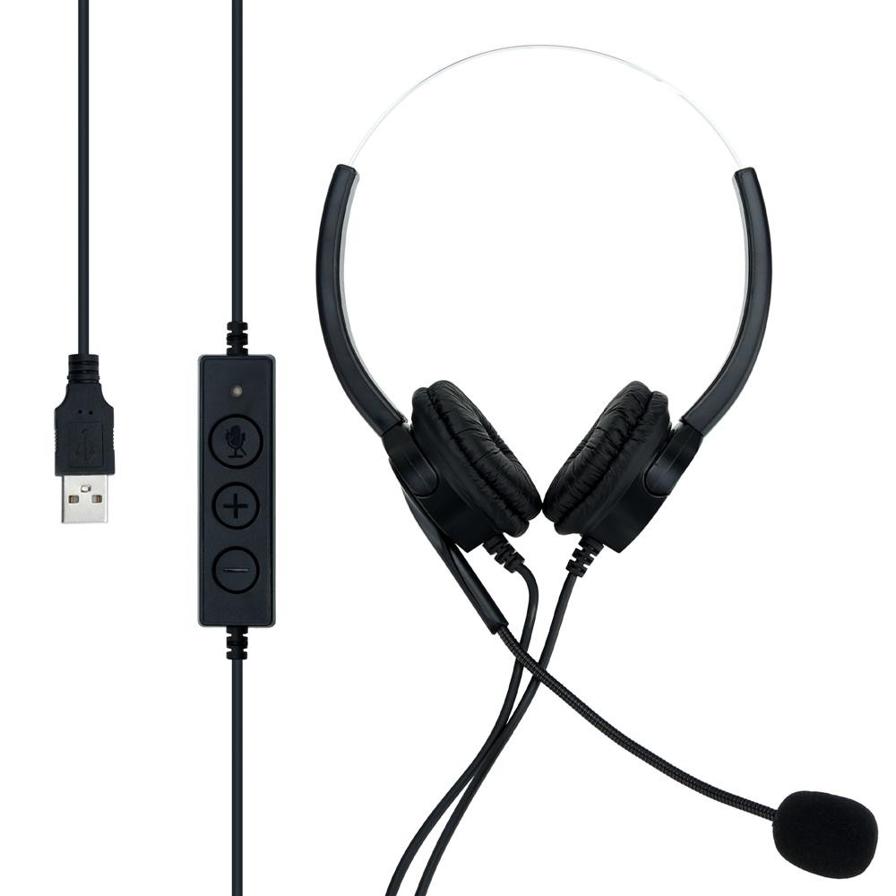 USB Headset Headphones for Laptop Computer PC noise-cancelling Microphone