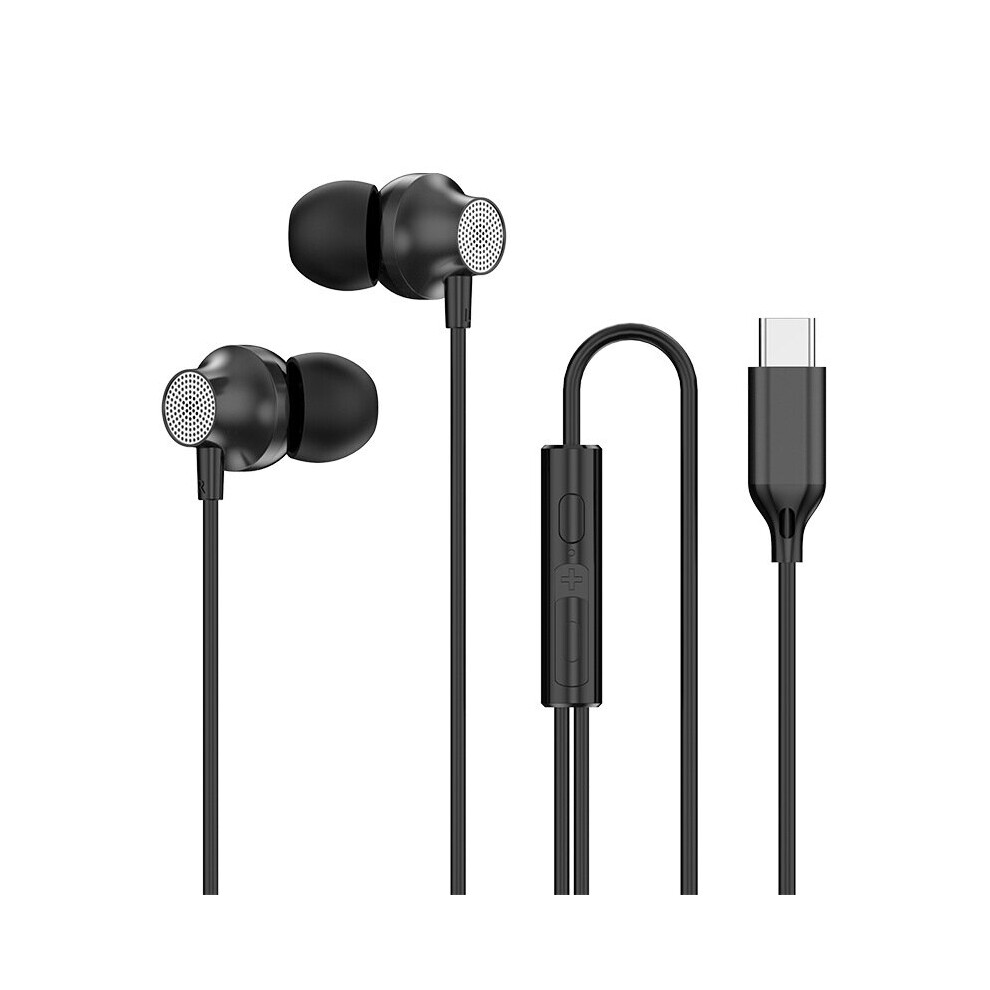 F13 Type-c Wired Earphone Hifi Bass Metal Sport In-ear Headset Music Gaming Earphone with Mic for Oneplus Xiaomi Huawei BLACK COLOR