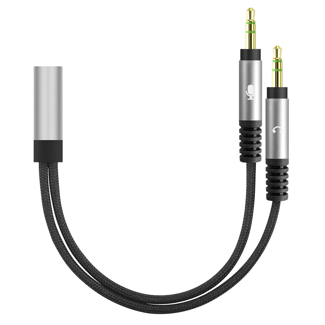 Headset Splitter Cable 3.5mm Female to 2 Dual TRS Male Headphone Mic Stereo