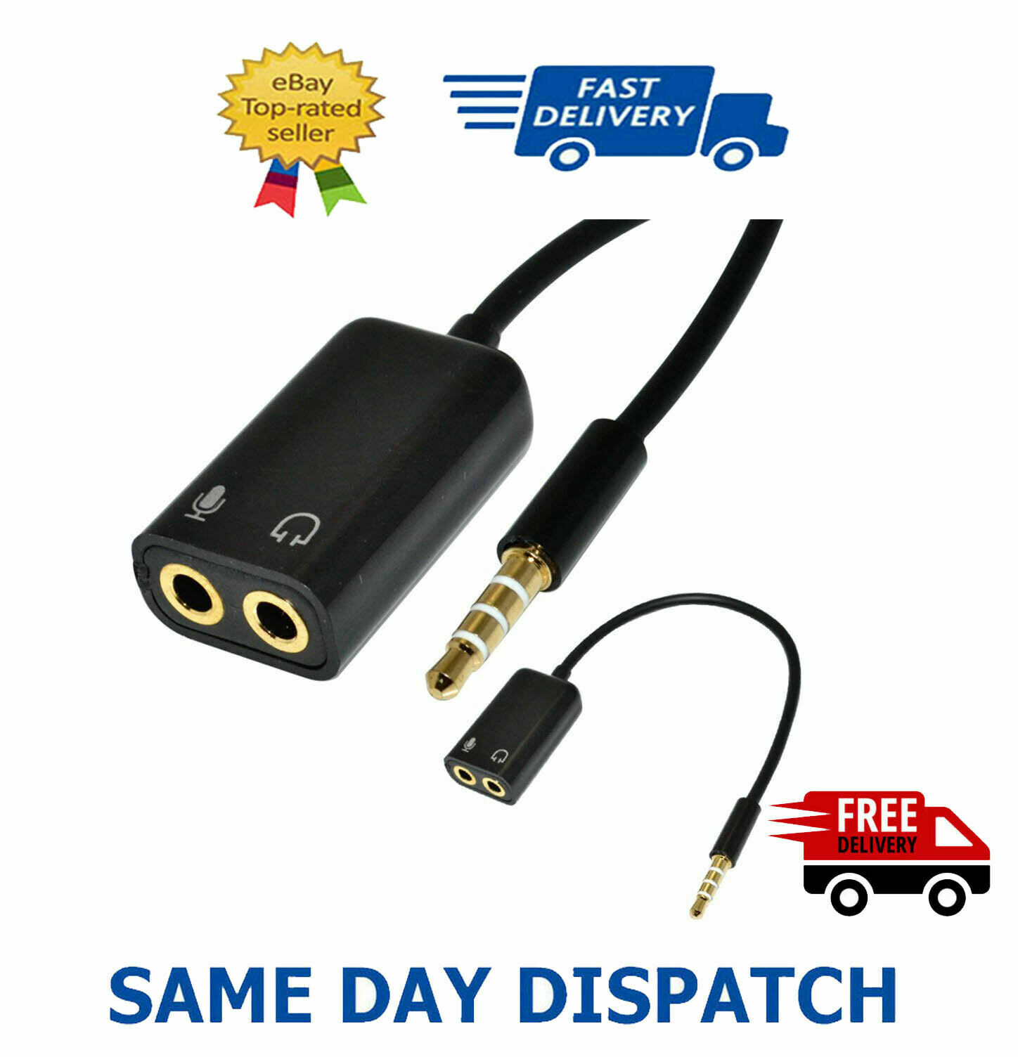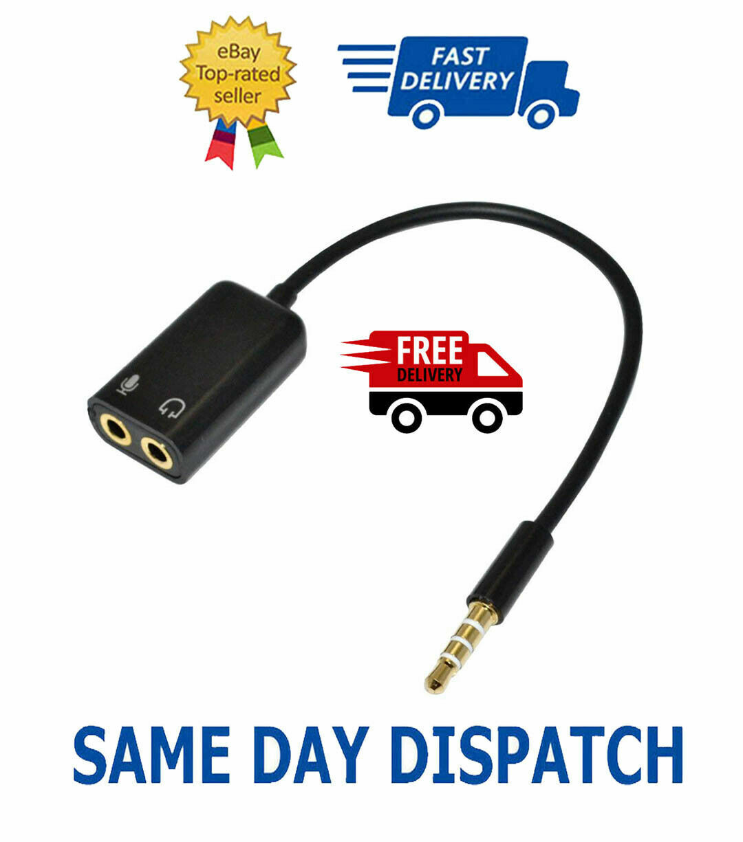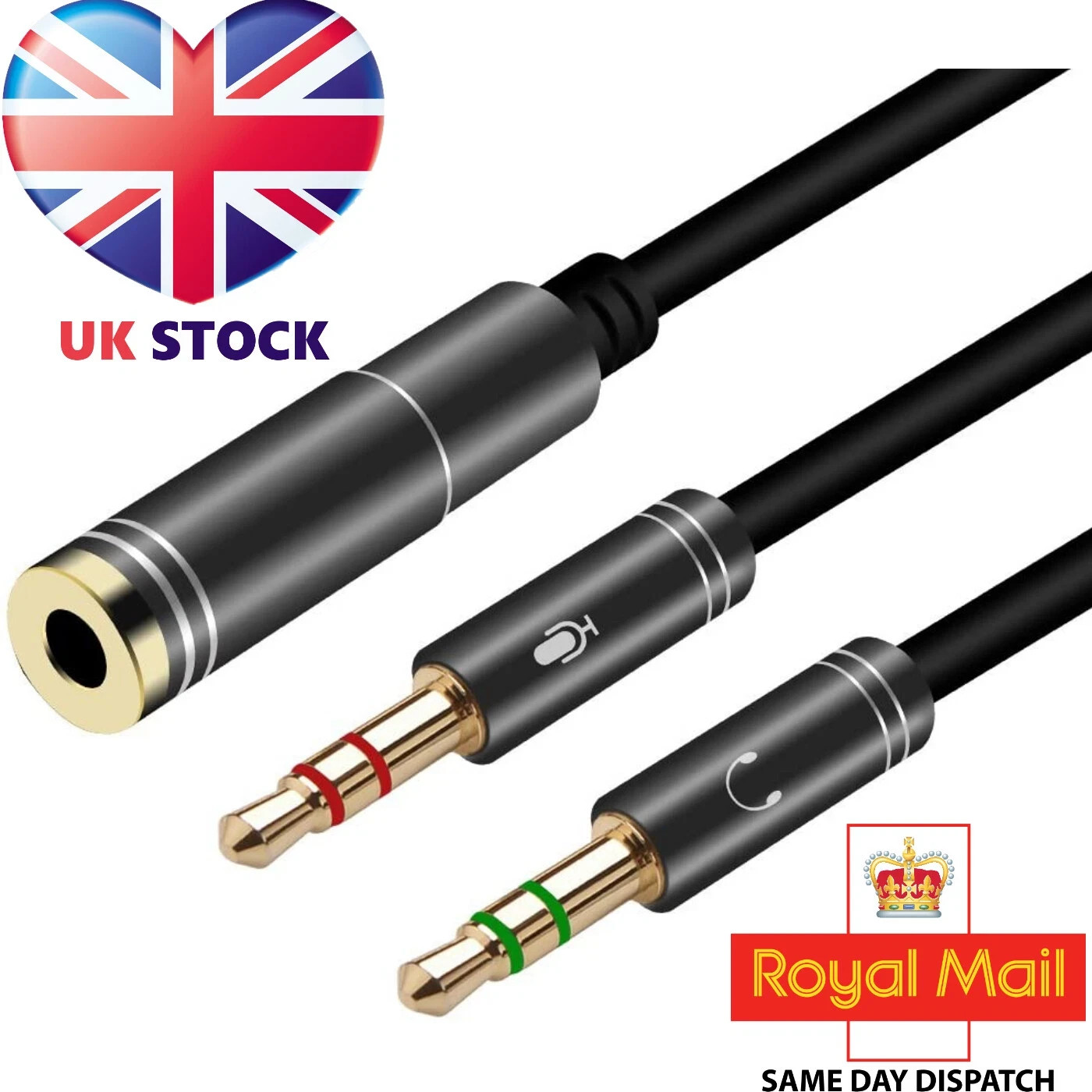 3.5mm Female to 2 Male Headset Splitter Adapter Cable for PC Computer uk based.
