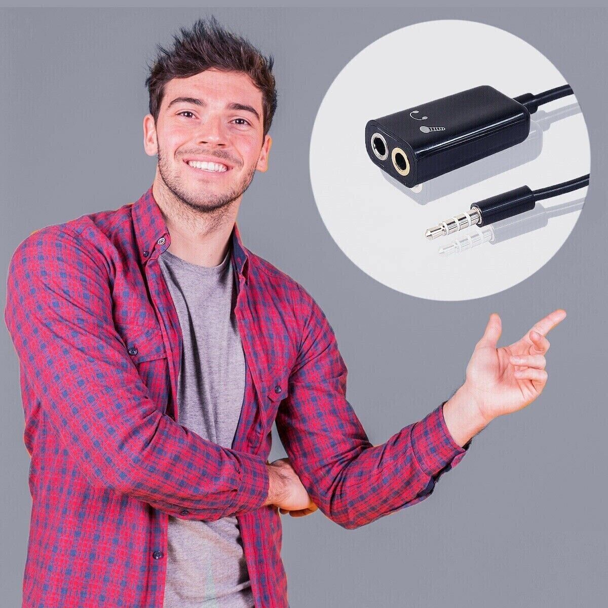 LMS DATA - 3.5mm Headset Splitter Adaptor, 3.5mm Socket to 2x 3.5mm Plug