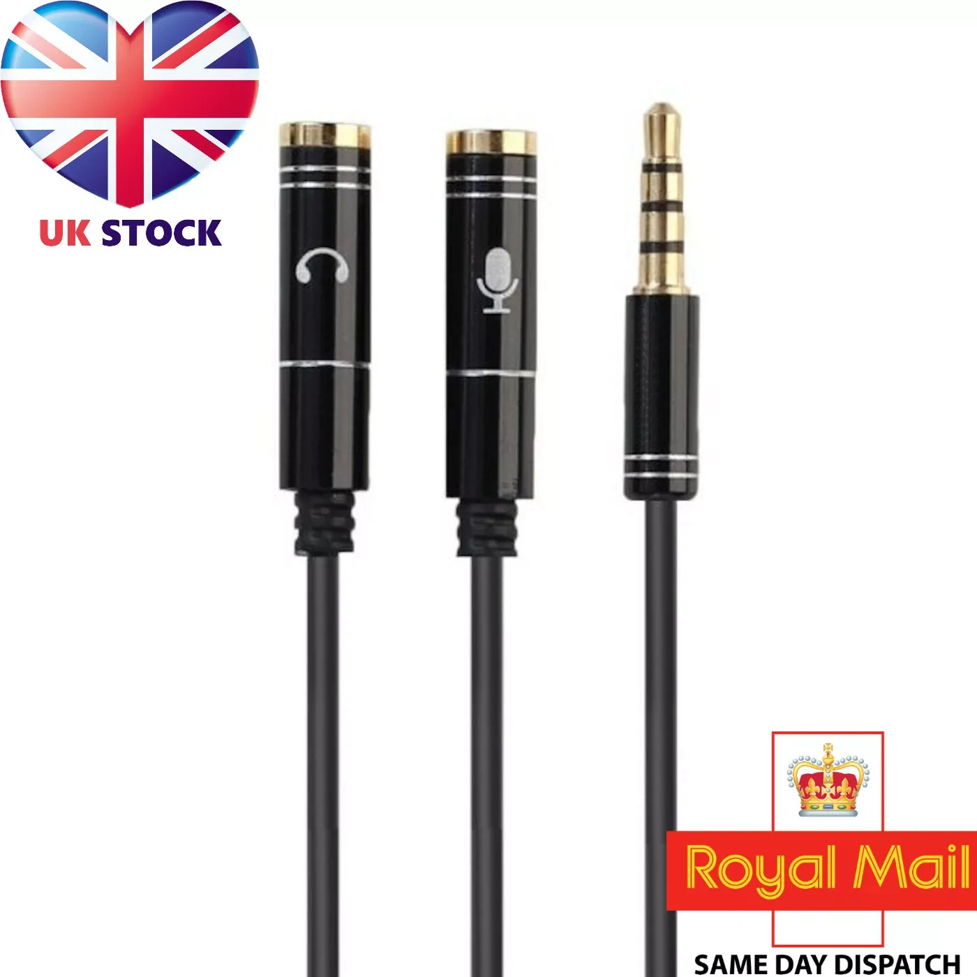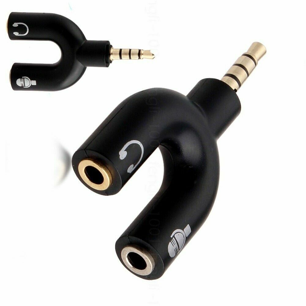 3.5mm Audio Headset Mic Splitter Cable Adapter For Headset Earphone Phone - UK
