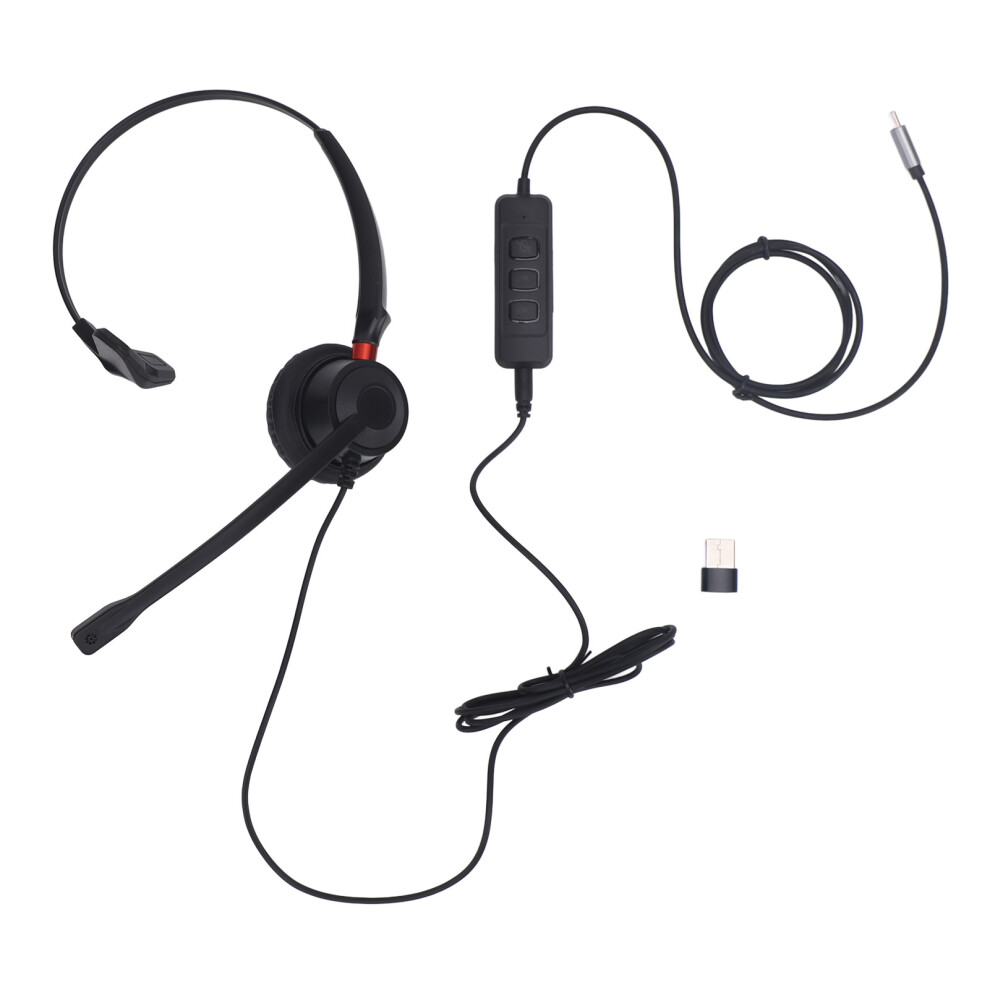 Noise-Canceling Monaural USB Plug Headset Headphones with Mic for PC