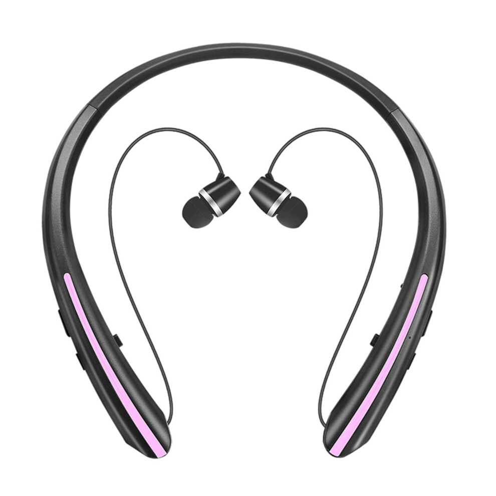 (a-Pink) Sports Bluetooth Headset 5.0 Wireless Neckband Earphones Hanging Neck Stereo Headphones Waterproof Earbud With Microphone