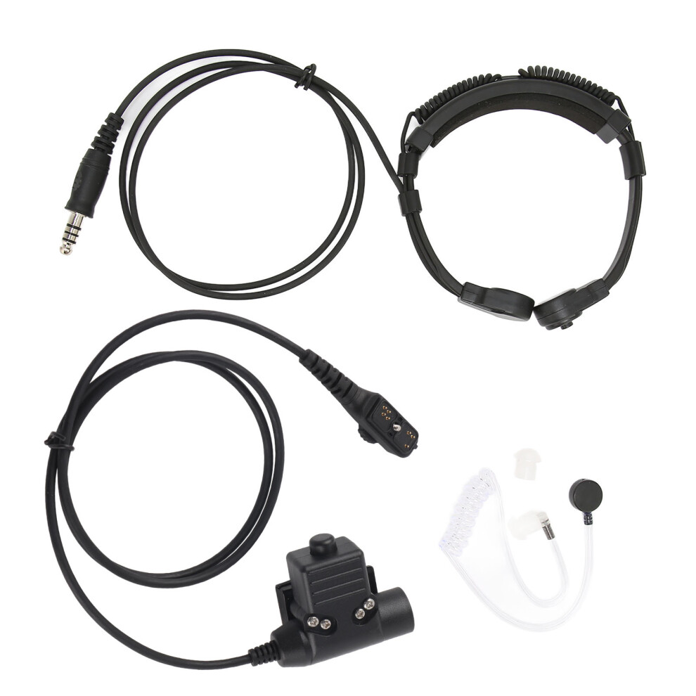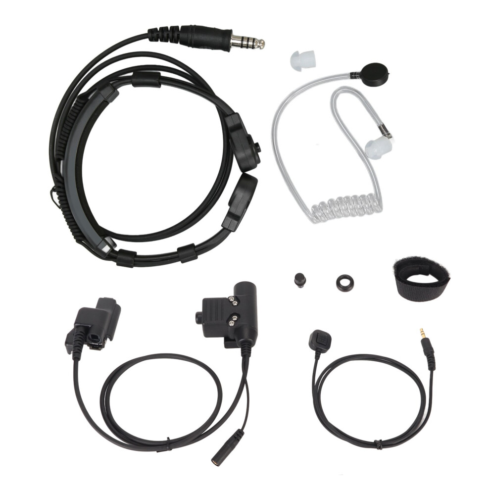 Tactical Throat Mic Headset With Flexible Neckband Low Profile Design Bone Conduction Technology Noise Reduction Acoustic Tube Compatible For Walkie
