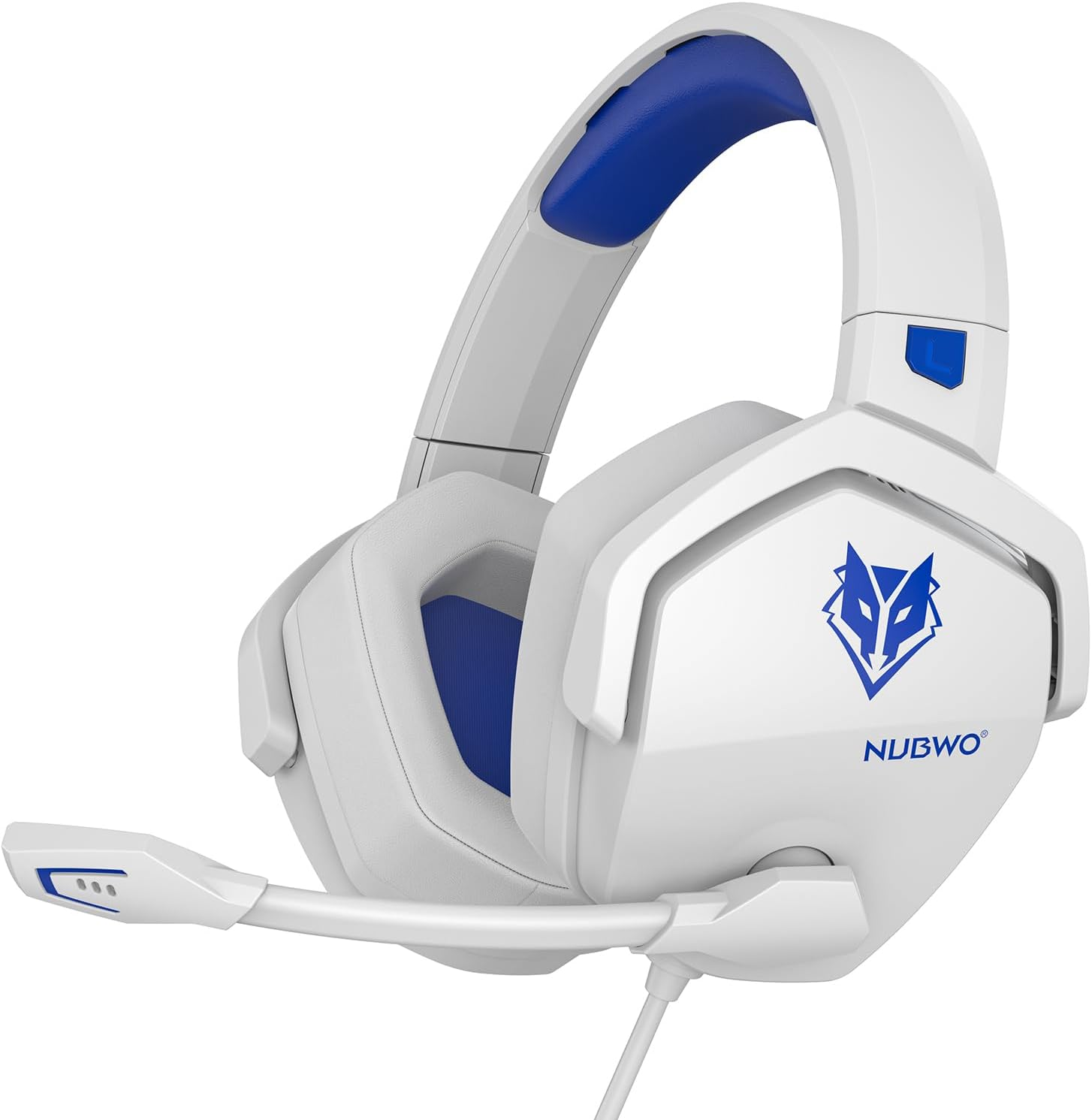 NUBWO N16 Gaming Headsets for Xbox, PS5, PS4, PC, NS, Mac - Over Ear Headphones with Microphone, Stereo Sound, Wired Headet with 3.5mm Audio Jack (White Blue)