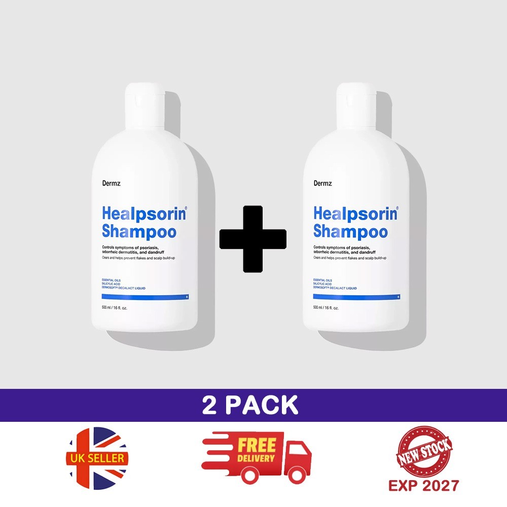 2 PACK Psoriasis Shampoo 500ml Salicylic Acid Dermz Healpsorin Therapeutic UK
