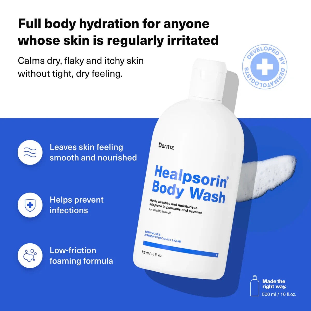 Psoriasis Body Wash Hydrating for Sensitive Skin Dermz Healpsorin 500ml UK STOCK
