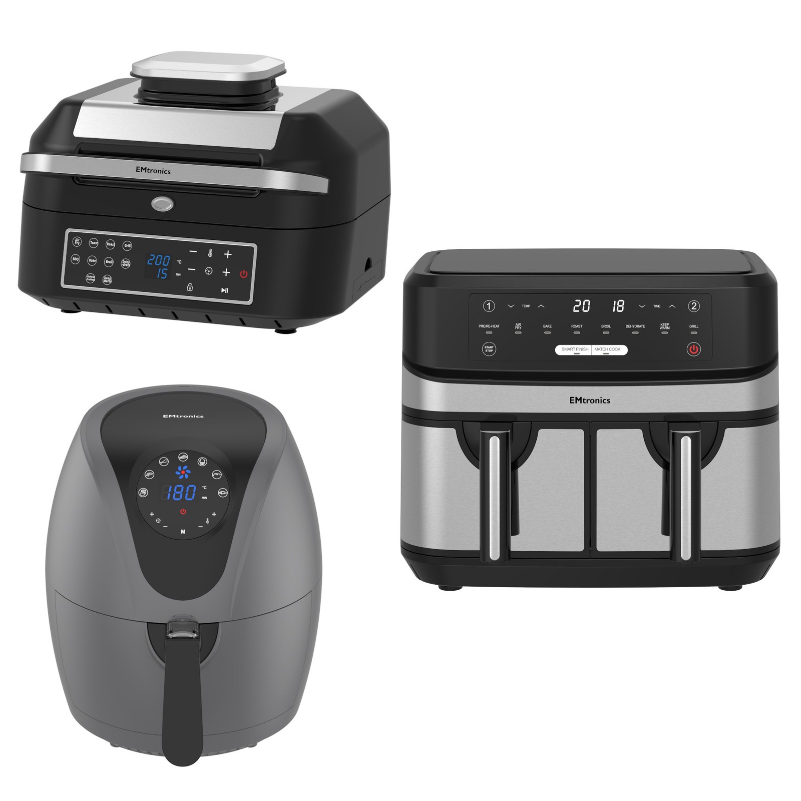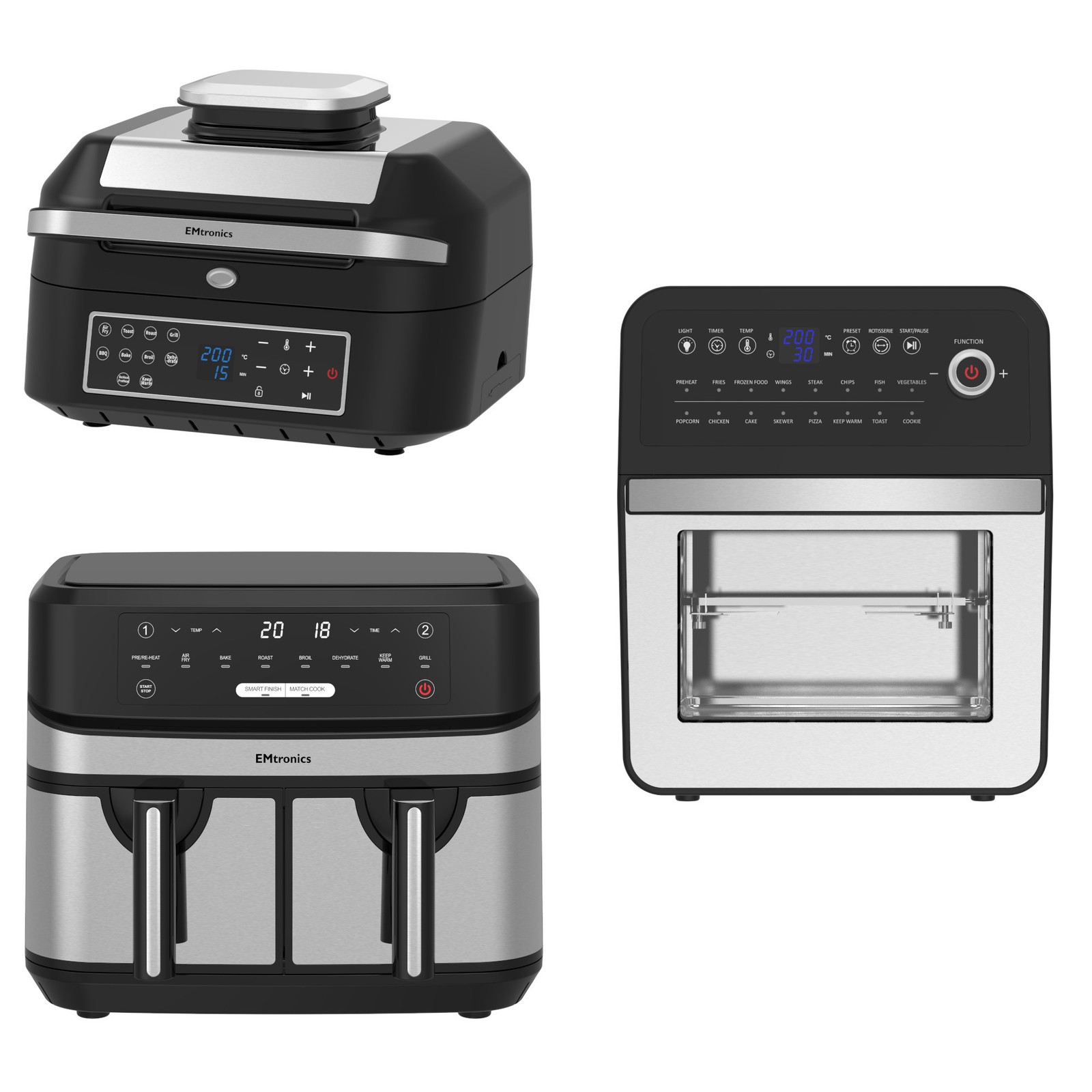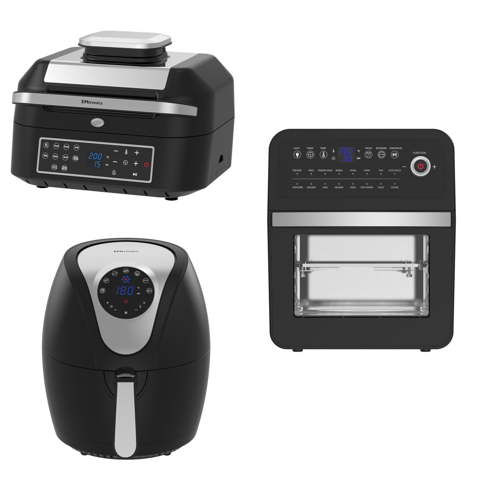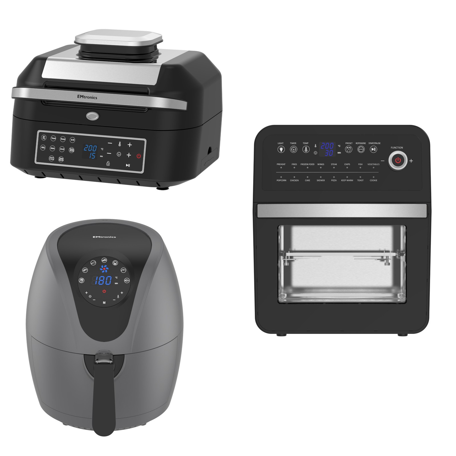 Emtronics Kitchen Set 6.3L Health Grill, 9L Double & 12L Oven Air Fryer