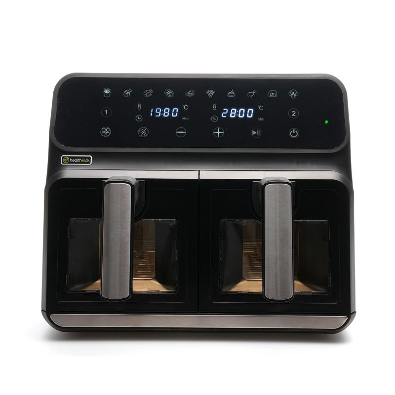 Health Kick 8ltr Digi-Touch Dual Zone Windowed Air Fryer Black - K3431