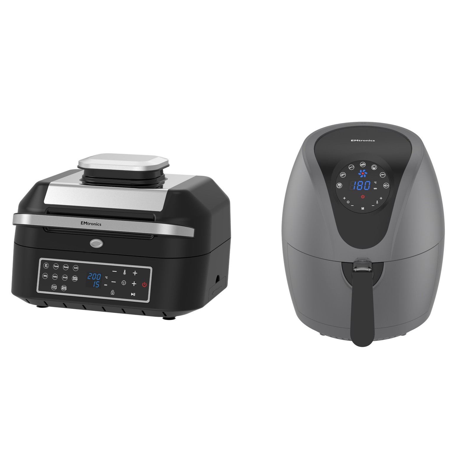 Emtronics Kitchen Set - 4.5L Grey Single Drawer Air Fryer & 6.3L Health Grill